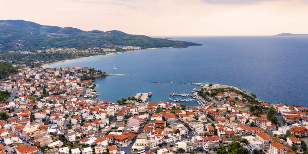 To get to Neos Marmaras you should take a flight from your country to Thessaloniki International Airport. The “Macedonia” Airport (IATA code: SKG) serves international and domestic flights and is located 15 km from the city center. We usually purchase airline tickets on the AVIASALES website which is one of the largest online search engines for flights all over the world. This service helps to compare airfares from hundreds of airlines and dozens of travel agencies and systems and book the cheapest tickets available.