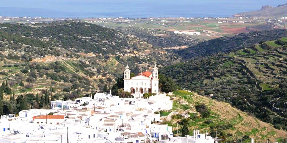 Lefkes is considered the most authentic village of Paros. It is located in the center of the island, about 300 meters above sea level, and surrounded by green hills and olive trees.
