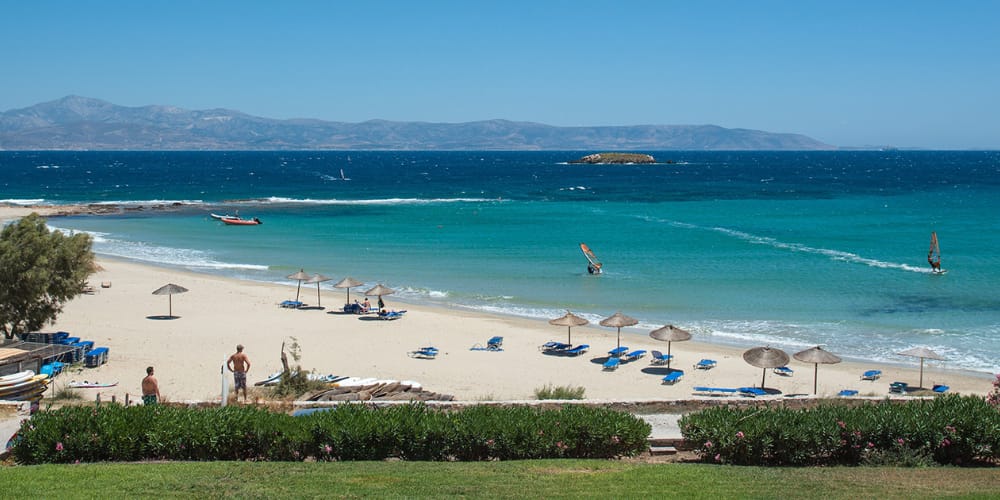 Overall, Nea Chrissi Akti is a fantastic destination for those looking for a combination of water sports and relaxation on Paros Island. Its stunning natural beauty, clear waters, and range of activities make it a popular spot for both locals and tourists alike. The beach is Blue Flag awarded.