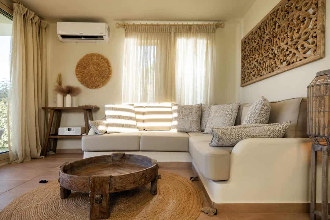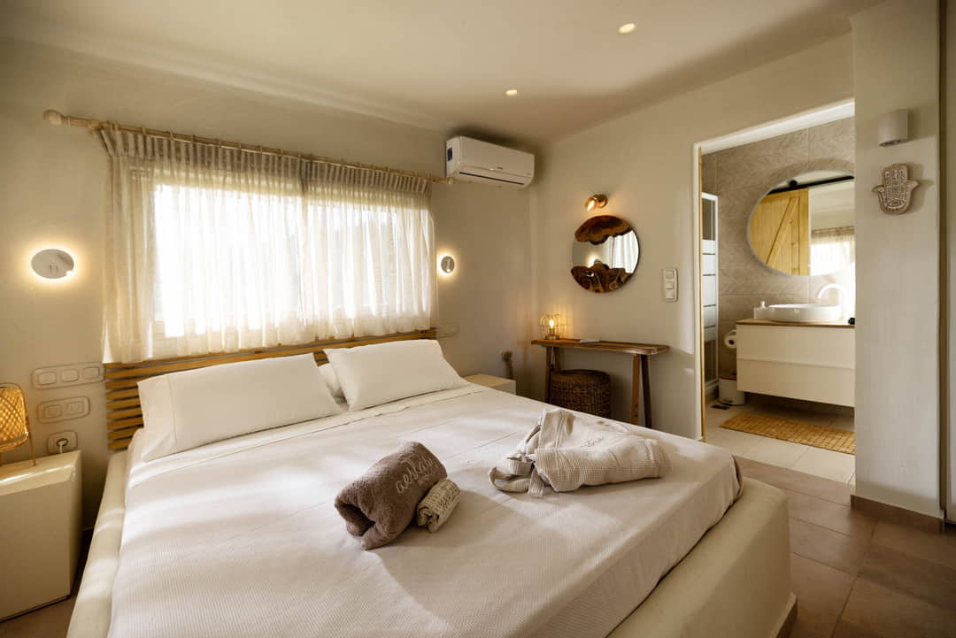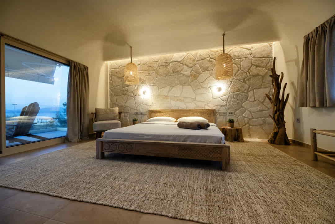 This stylish villa is designed in a boho-chic style, featuring high-quality materials with aesthetics and design at the highest level. Guests have direct access to a wide sandy beach with private sun loungers and umbrellas. The villa is close to the cosmopolitan village of Pefkohori, offering a variety of restaurants, cafés, shops, beach bars, and clubs.