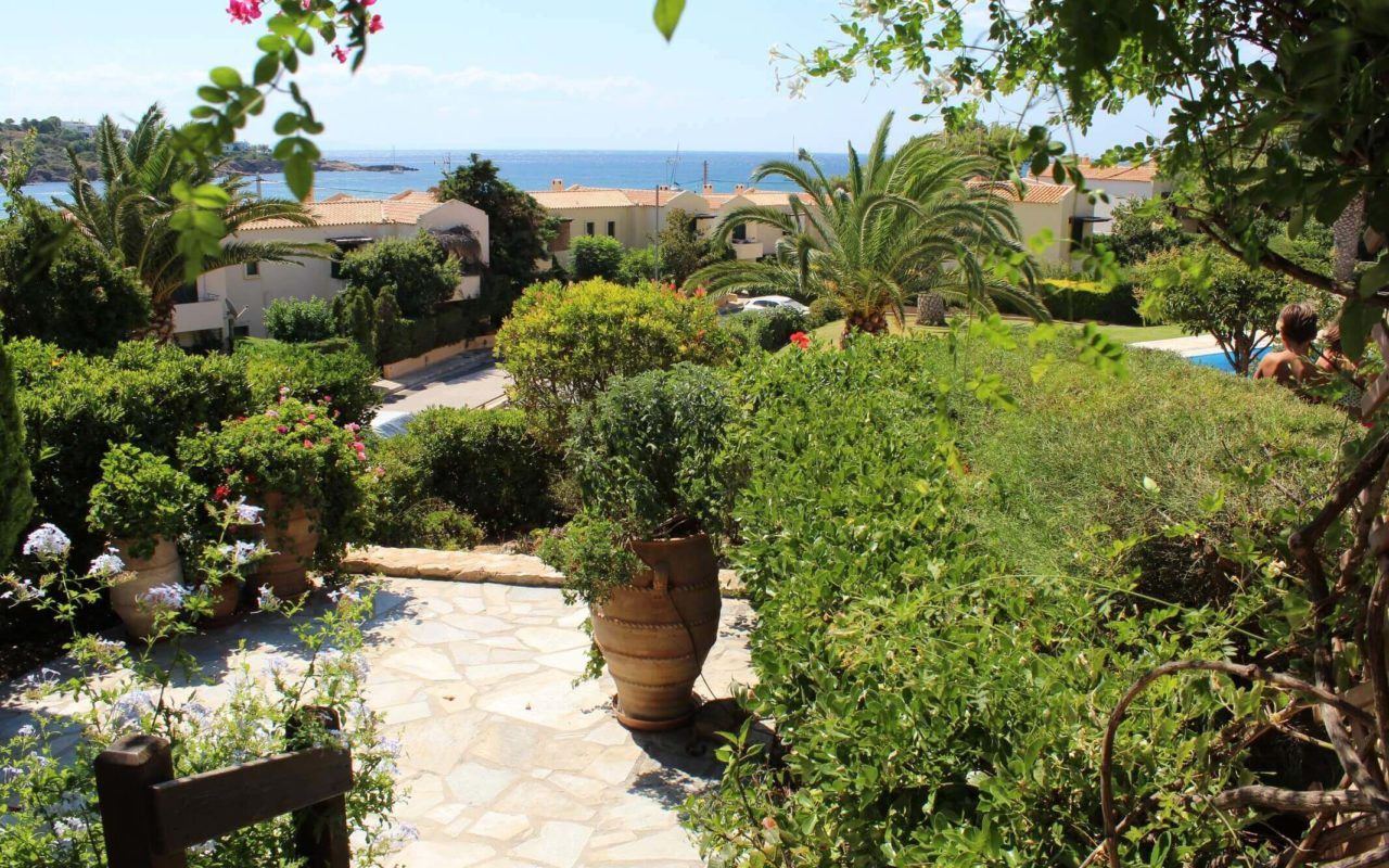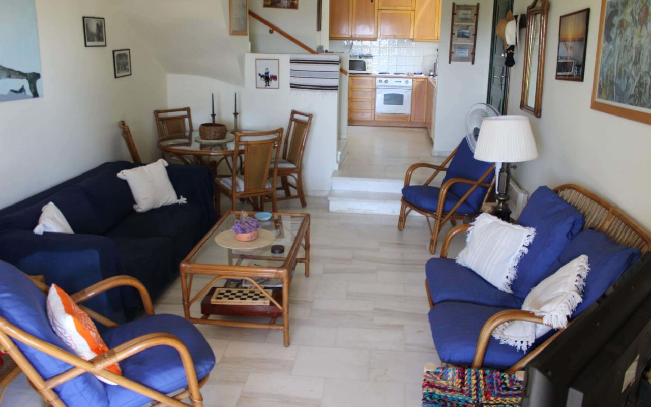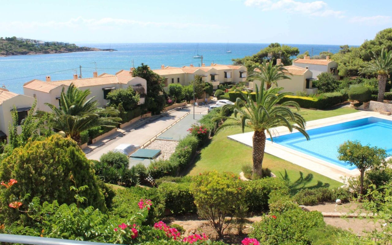 Cozy holiday house Agas in a complex with a shared pool, beautiful garden, and direct access to the sandy beach, next to the Cape Sounion, on the East Coast of Attica for rent.