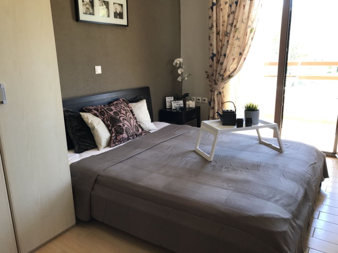 - 3rd bedroom with double bed and balcony overlooking the garden and the sea