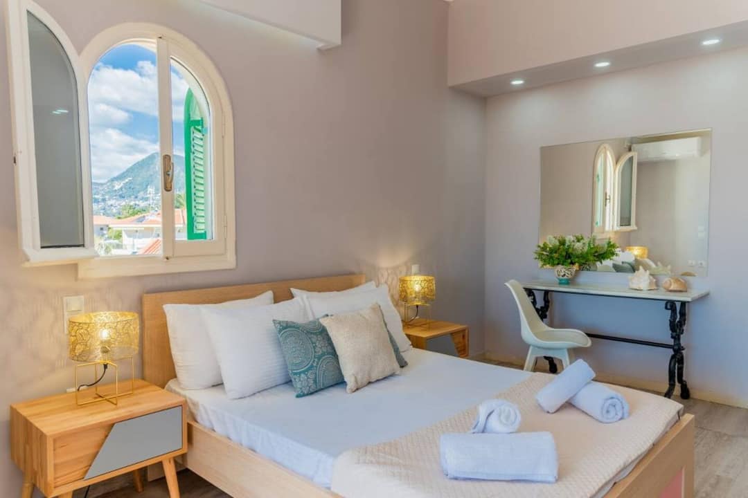 Cozy and elegant Villa Amare with 3 bedrooms and a private swimming pool, just 100 meters from Agios Sostis Beach on the island of Zakynthos, is available for rent.