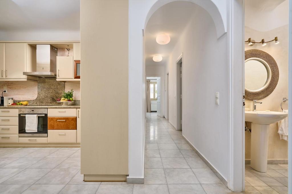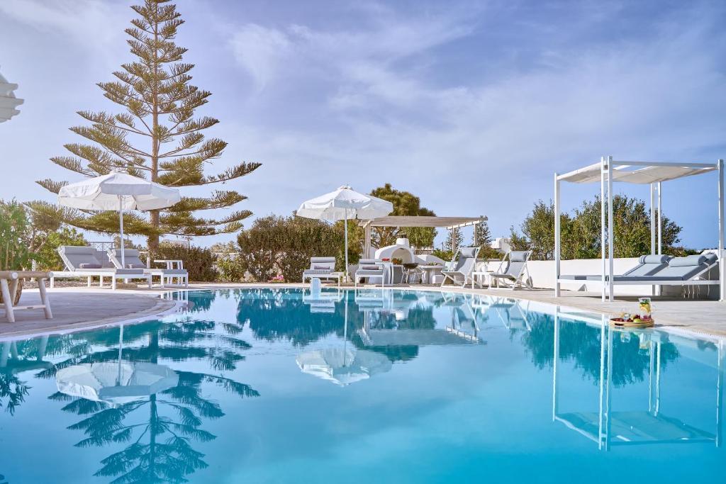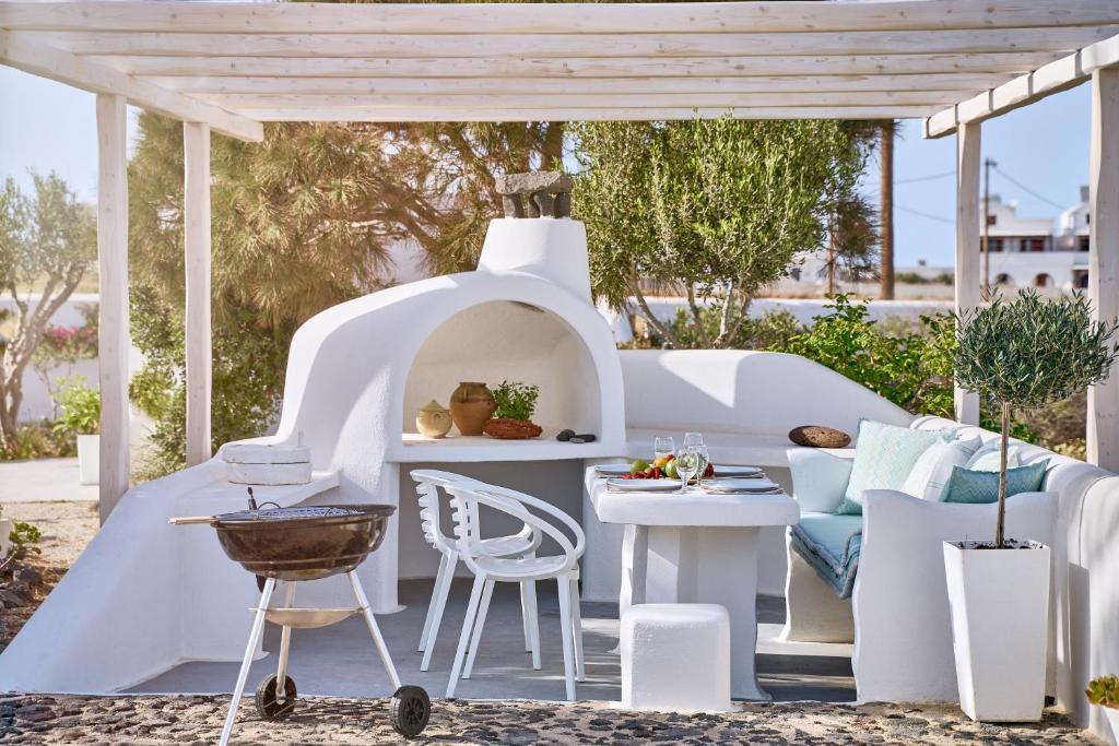 A wonderful villa with spacious indoors and sophisticated outdoors with blending modern and traditional décor is located in the heart of a tranquil, beautiful area of Santorini. It combines the Cycladic architectural style of Santorini with the high expectations of its guests and it’s perfect for families or groups of friends.