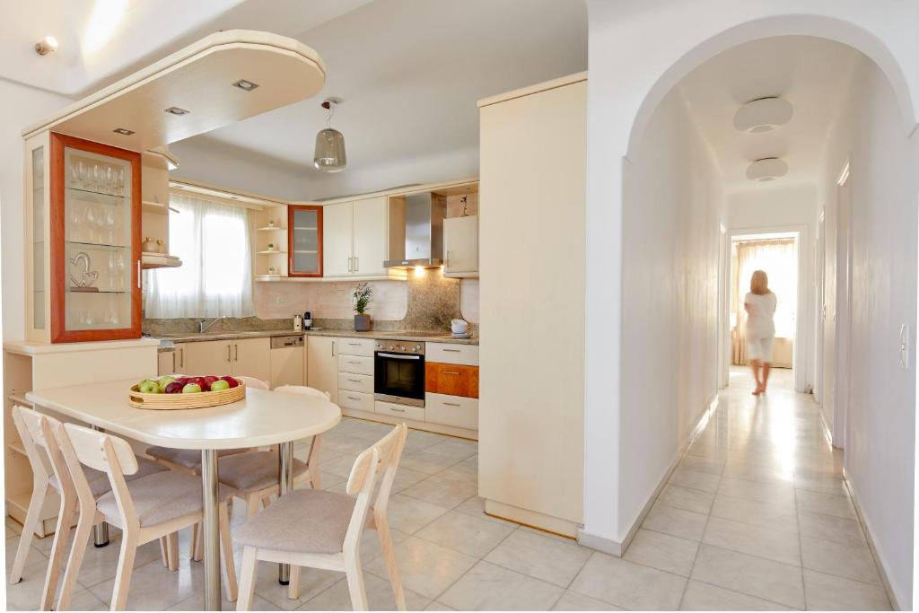 Kamari is located just a few kilometers from the villa, where you will find supermarkets, restaurants, and cafes, and one of the best-organized beaches.