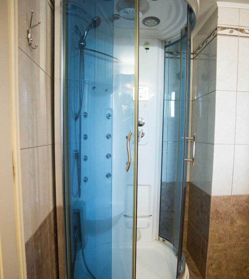 - Fridge with potable water cooler, oven, stove, kitchen hood, electric kettle, coffee maker, washing machine, dishwasher