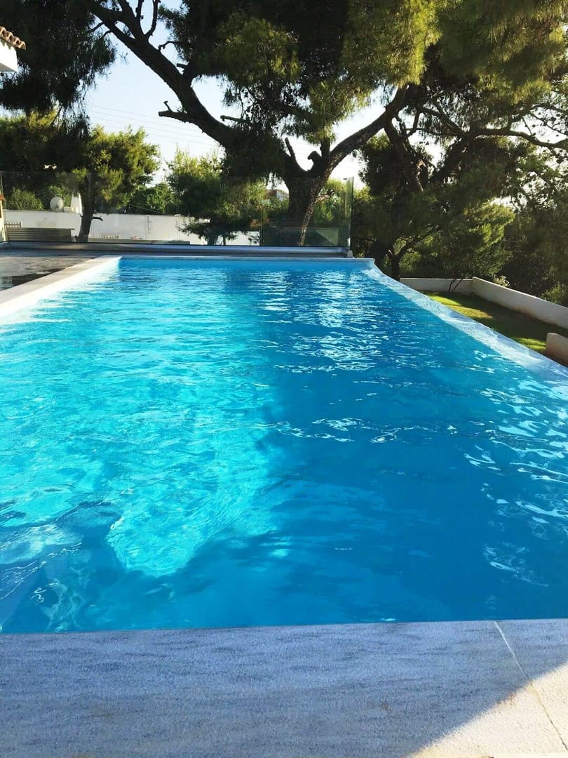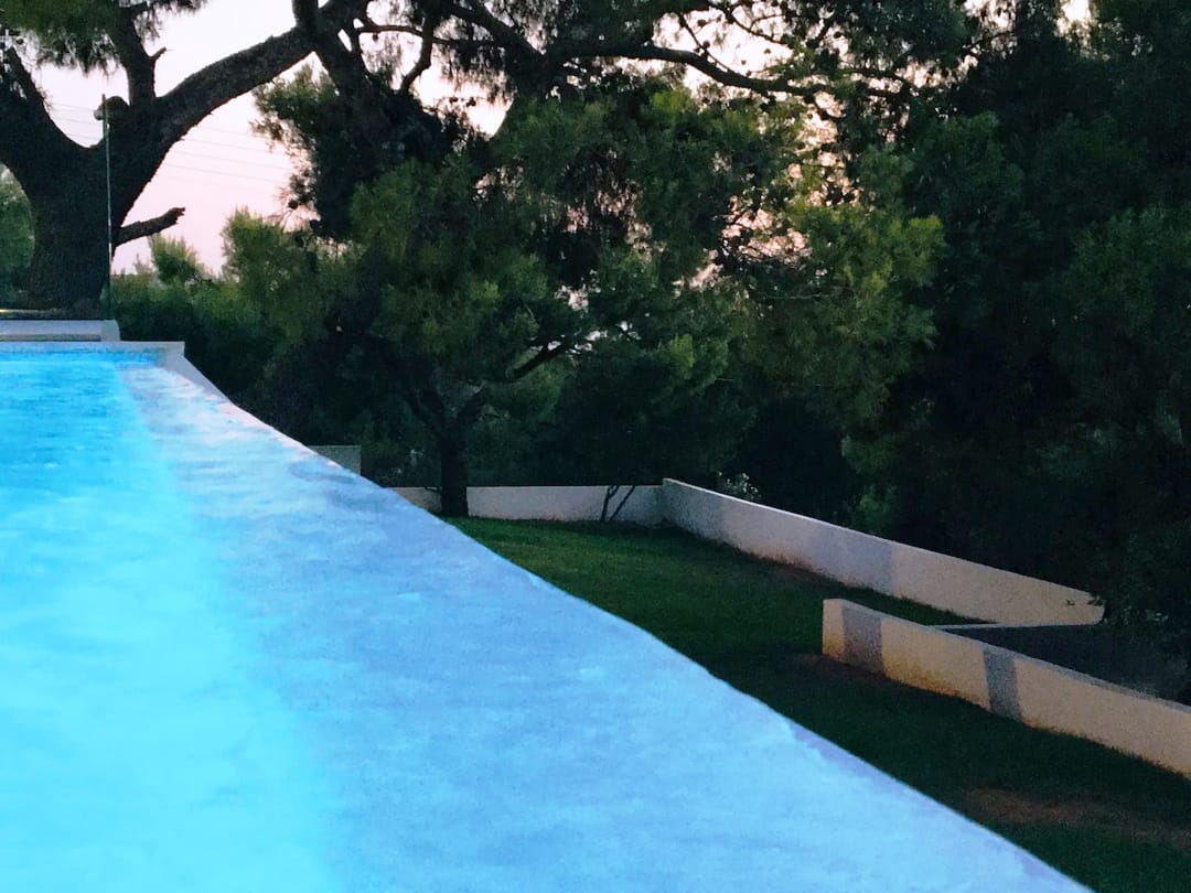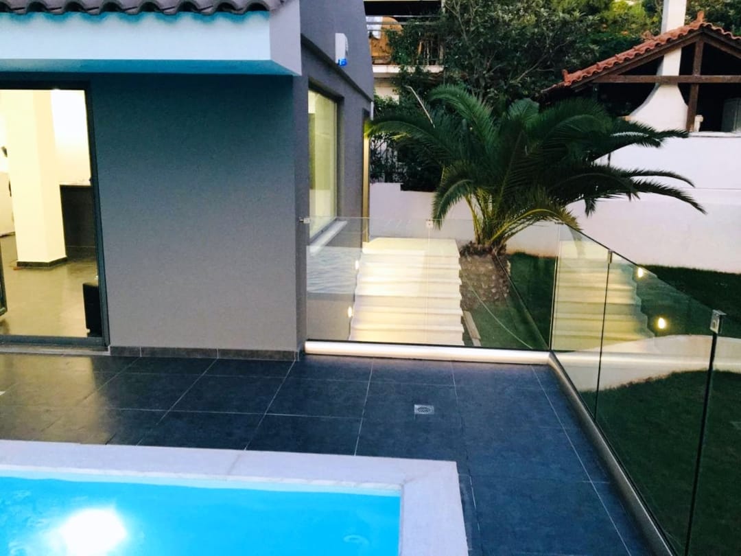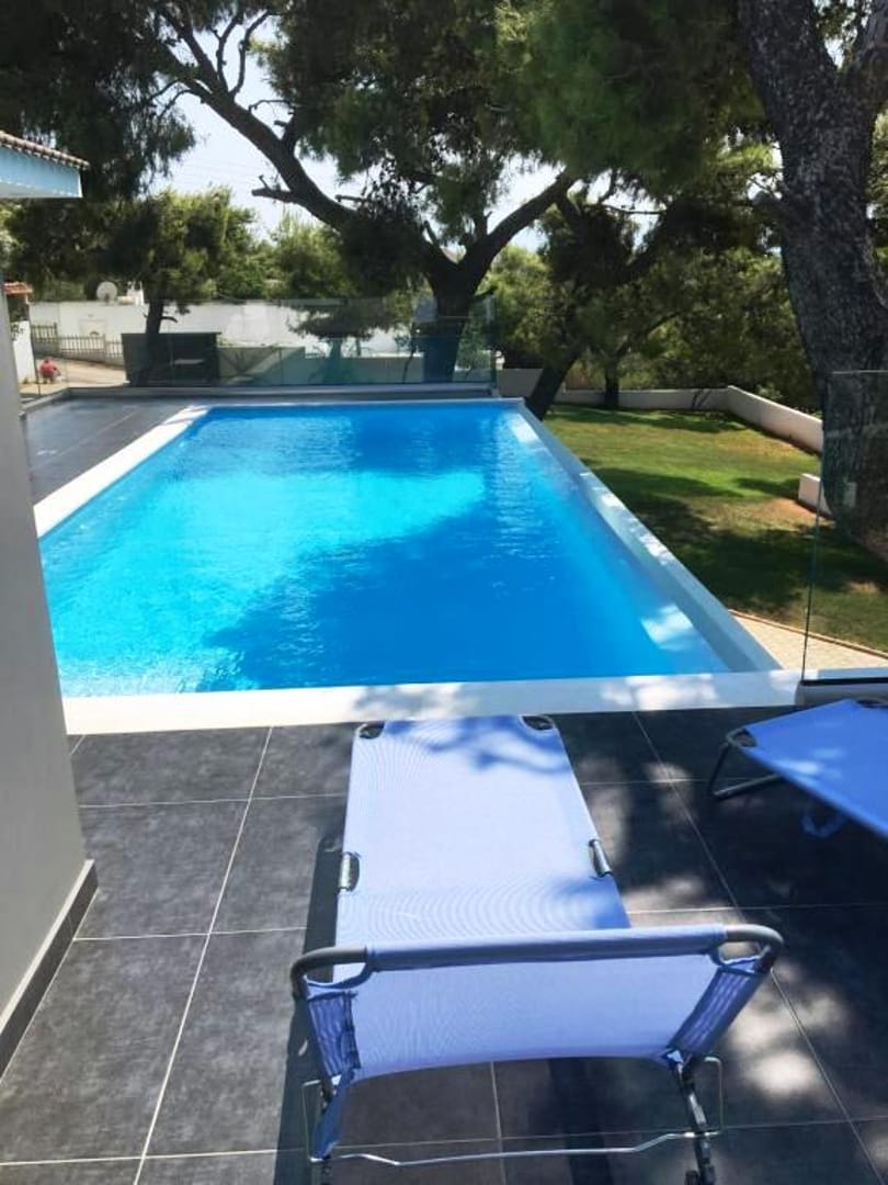 Modern, chic new villa Annie with 3 bedrooms and a private pool, on a beautifully manicured private garden with pine trees, close to the beach in Agios Dimitrios, Lagonissi area, in the Athens Riviera for rent.