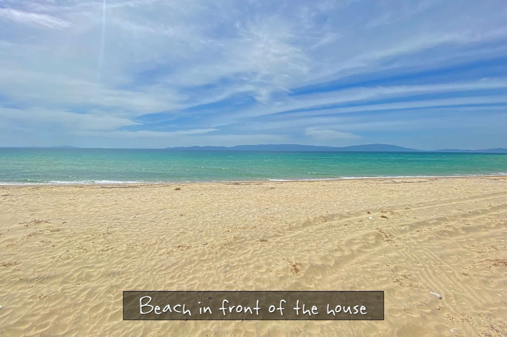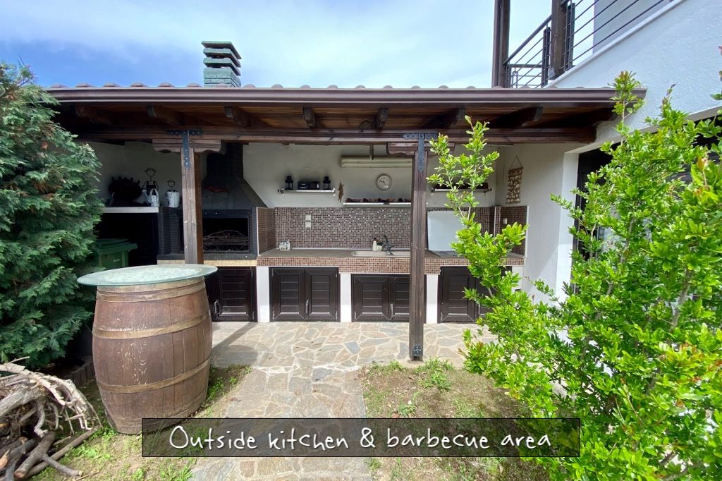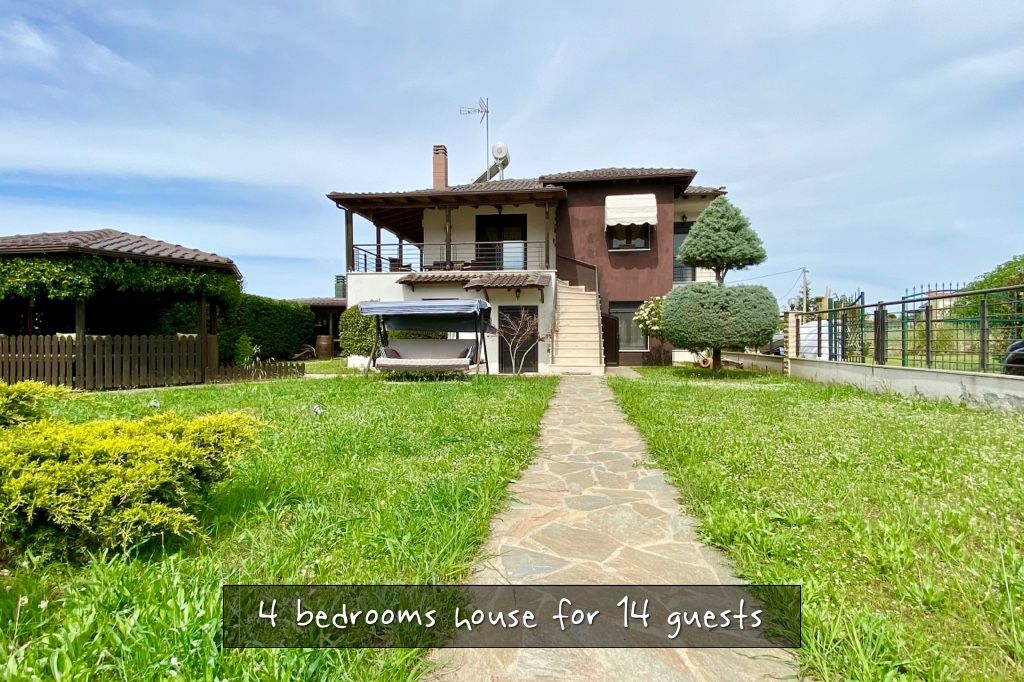 Comfortable, spacious villa Aris with 4 bedrooms, a private garden and barbeque, just 100 meters from the long sandy beach of Kariani, in Northern Greece, not far from Halkidiki Peninsula, for rent.