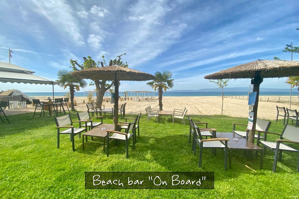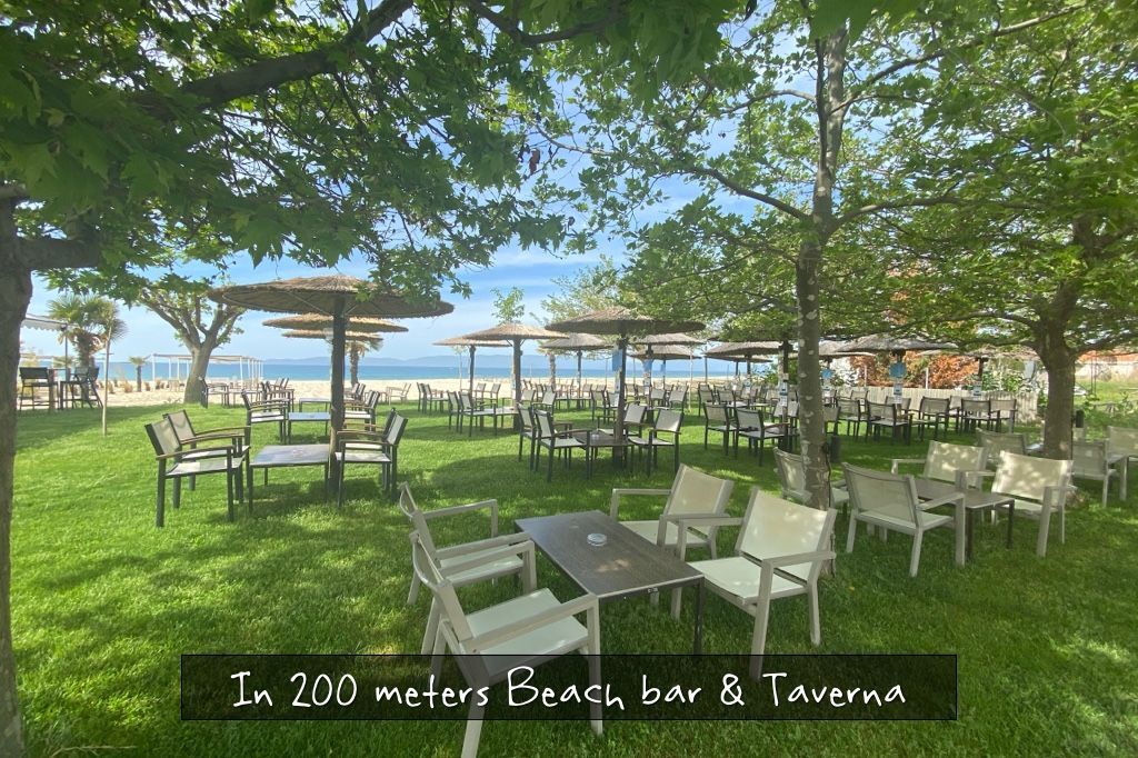- To the beach bar (free sunbeds and umbrellas when ordering drinks): 200 m