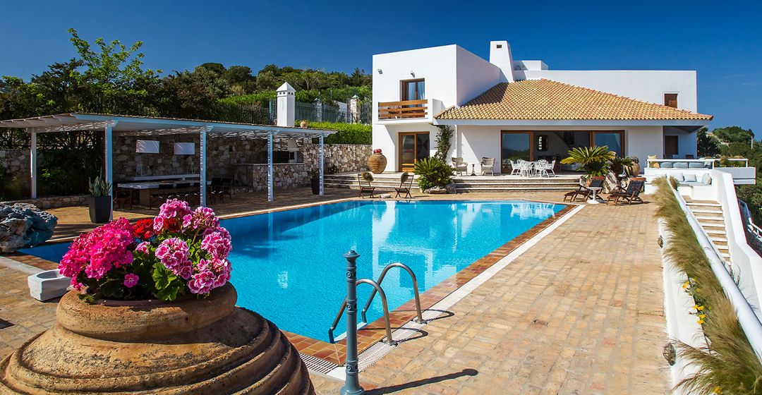 Elegant villa Aristo with 4 bedrooms and a private pool, located on the slope of Schinias bay, on the East Coast of Attica for rent.