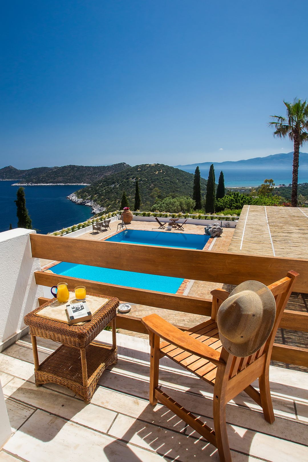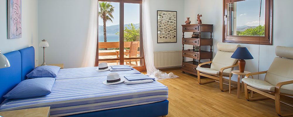 A distinctive aspect of the villa is its breathtaking views of the azure sea from each and every window. From the southeast bedroom window, one can distinguish the isles of Petalious, where the king of Greece used to vacation over the summers. From the northwest window, one looks past the dazzling swimming pool onto the exceptional National Park of Schinias.