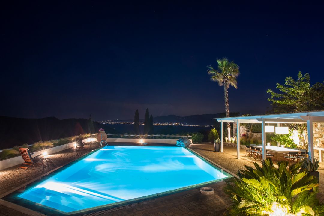 One can also enjoy the views while sitting under the pergola with the imposing marble table, which seats up to 12 people, enjoying a meal from the adjoining charcoal barbeque or while taking a dip in the pool. The sunbeds and the comfortable lounge arrangements offer great moments for relaxation under the sunlight. Car hire is recommended.