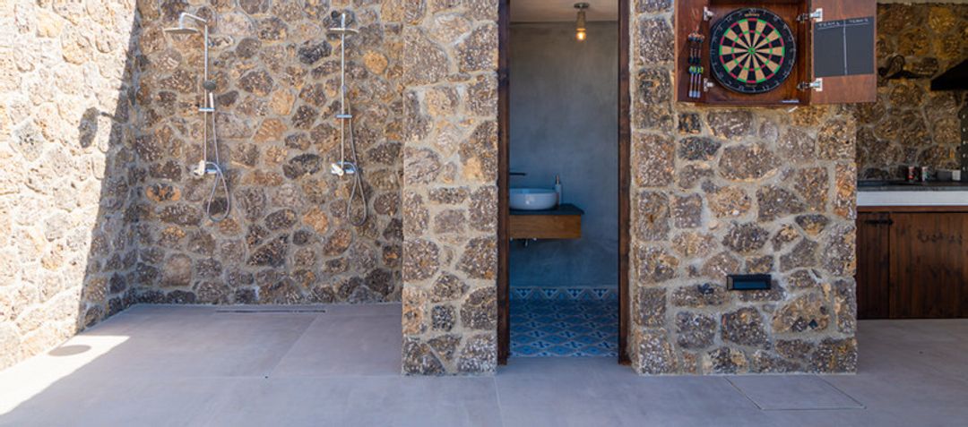 The spacious surroundings with the beautiful verandas all around the Villa give you the ultimate holiday feeling, tranquil & relaxed. While relaxing next to the pool in the designed outdoor furniture or having a meal sitting at the huge monastery-type dining table outside you will feel at home, comfortable & pampered. Feeling more active? Play a darts game, ping pong with your family or organize a billiards tournament.