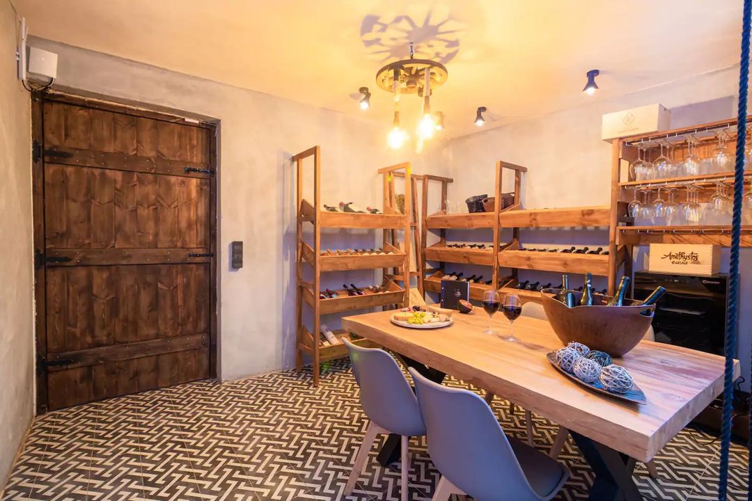 - Wine Cellar with a carefully selected wine collection. Optionally, is possible to organize a wine event with the sommelier.