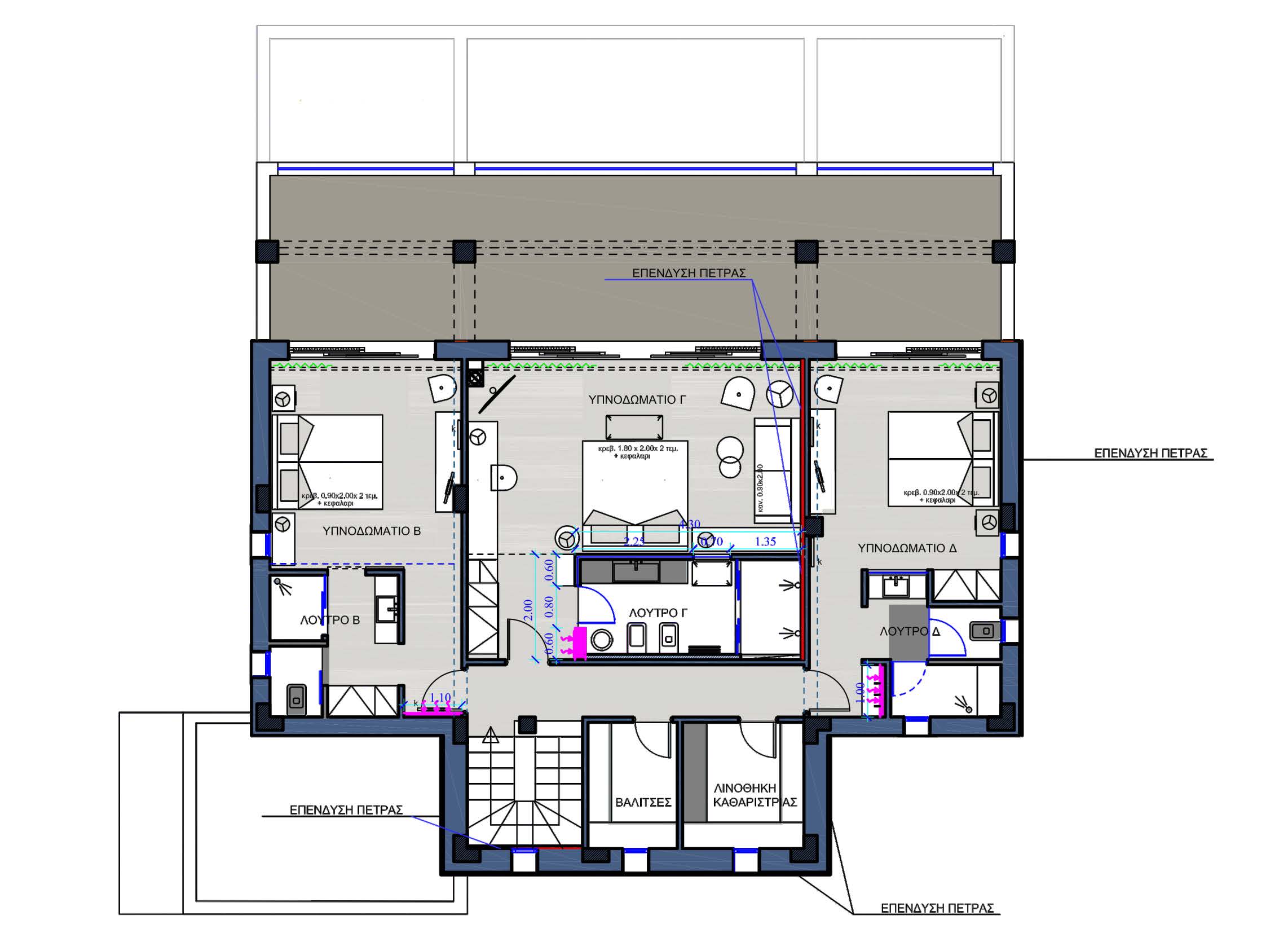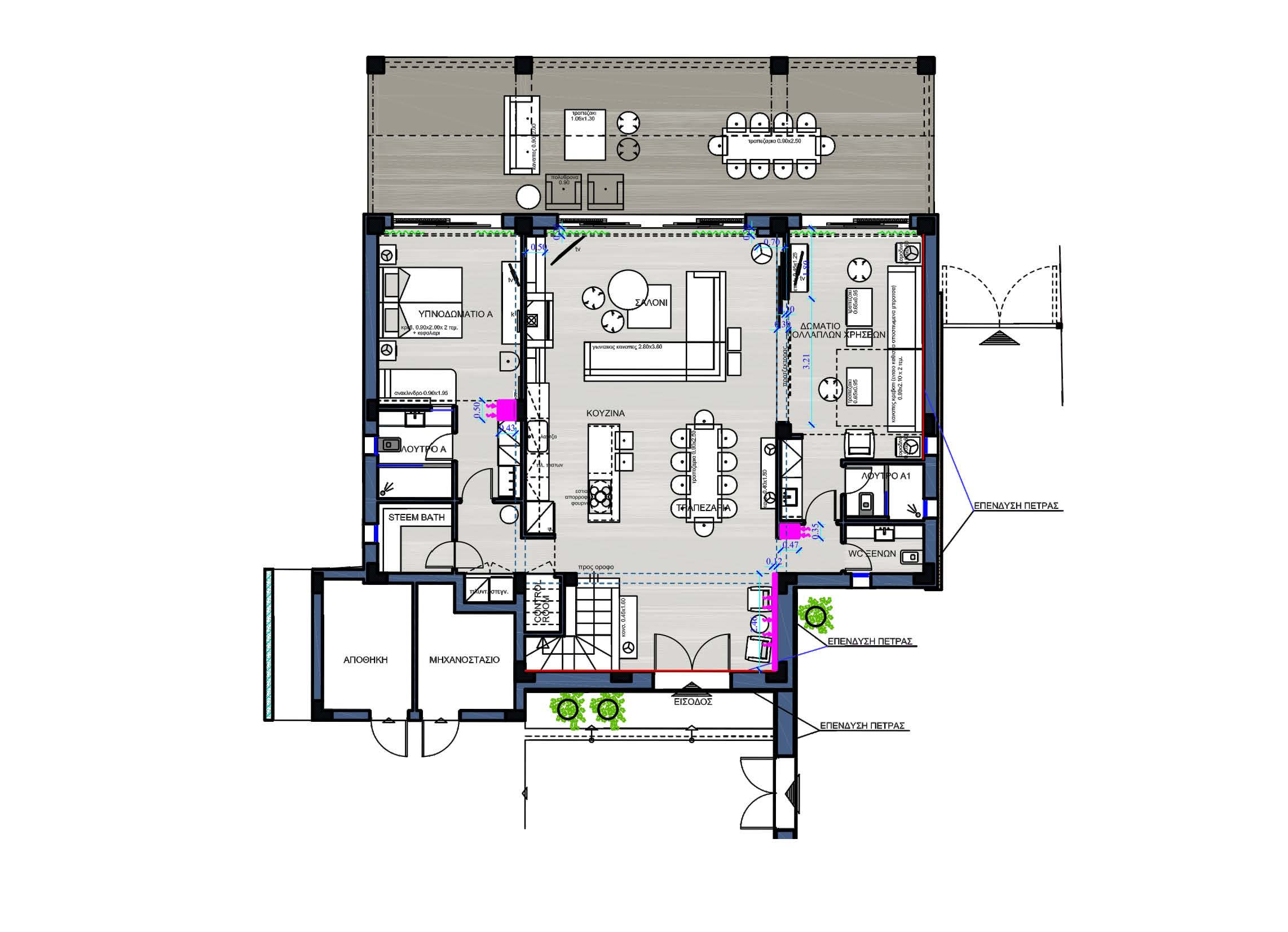 Sun and water are the natural resources that are exploited throughout the property. Rainwater is stored and after the process of desalination and osmosis treatment used for drinking water, as well as for the replenishment of the pool water and the irrigation system of the garden. Solar energy is used for heating and hot water use.