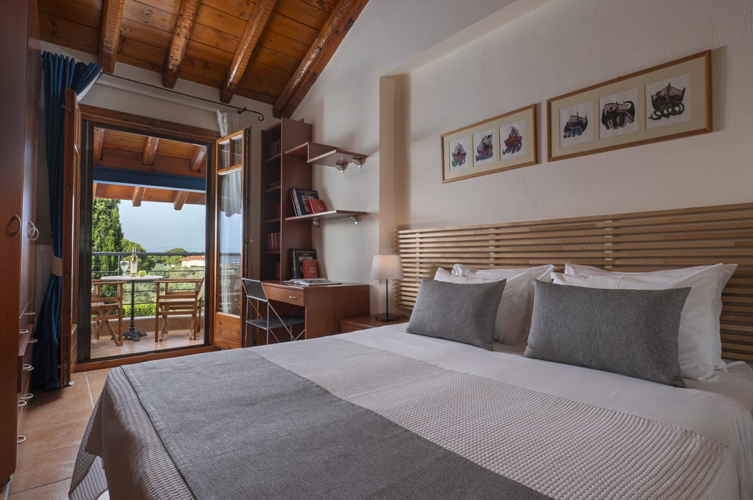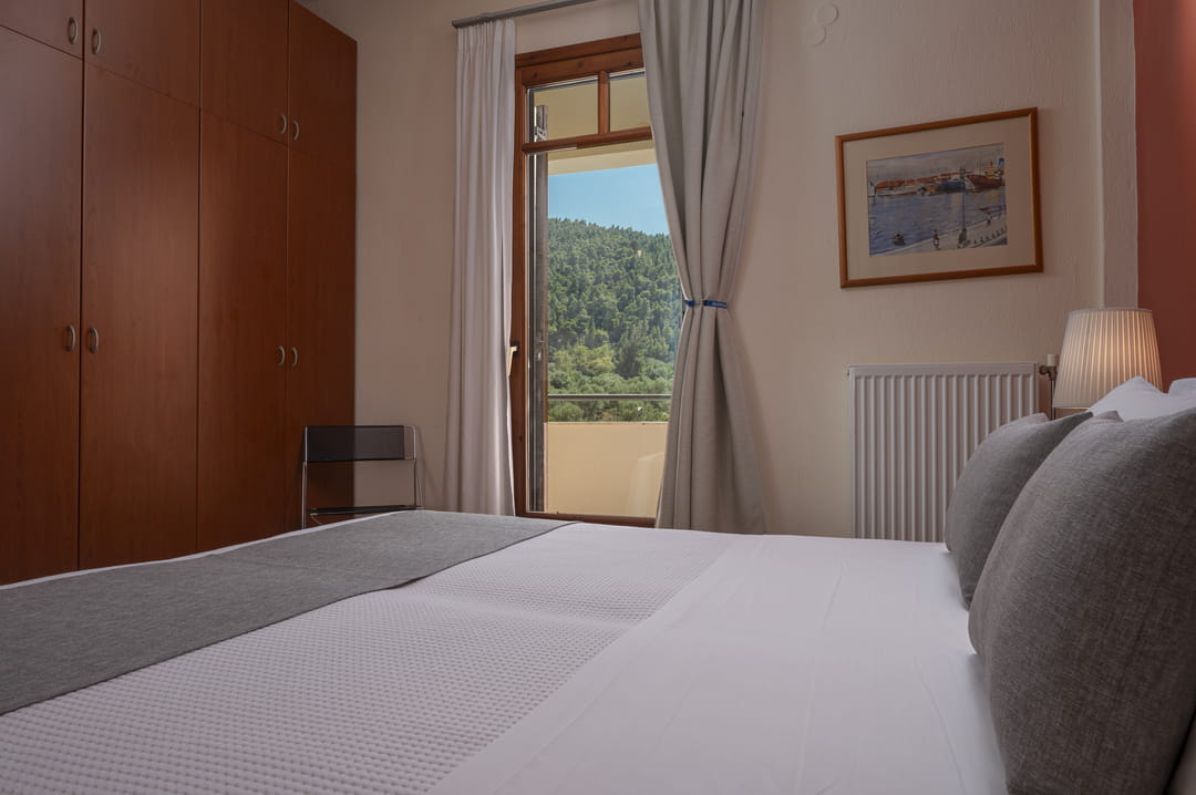 - 3rd bedroom with a double bed and a balcony overlooking the forest and the sea