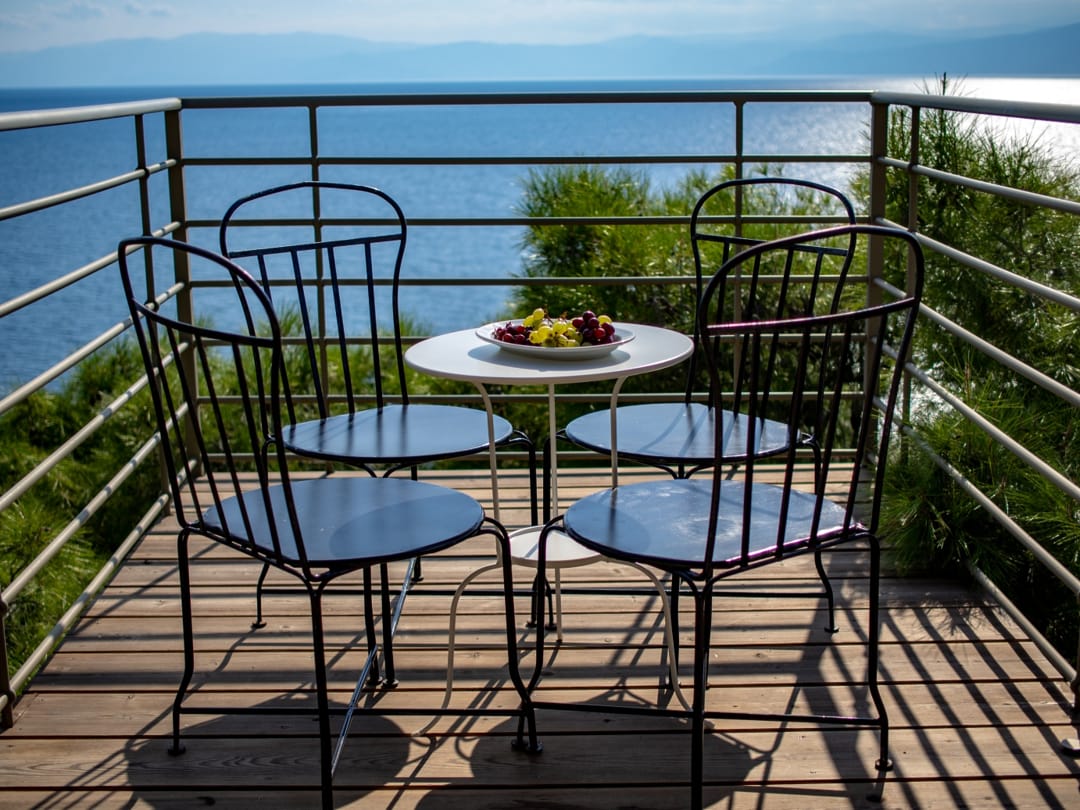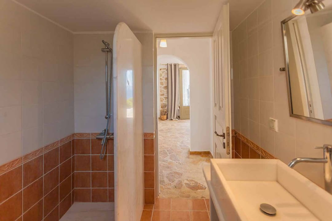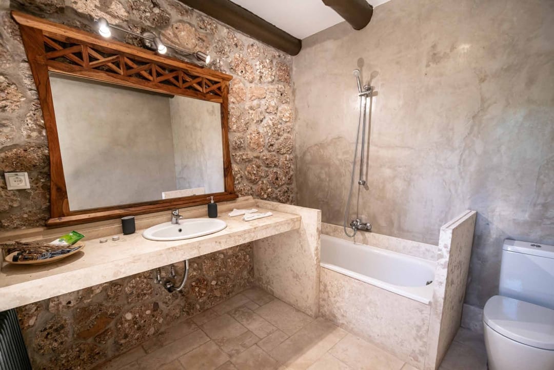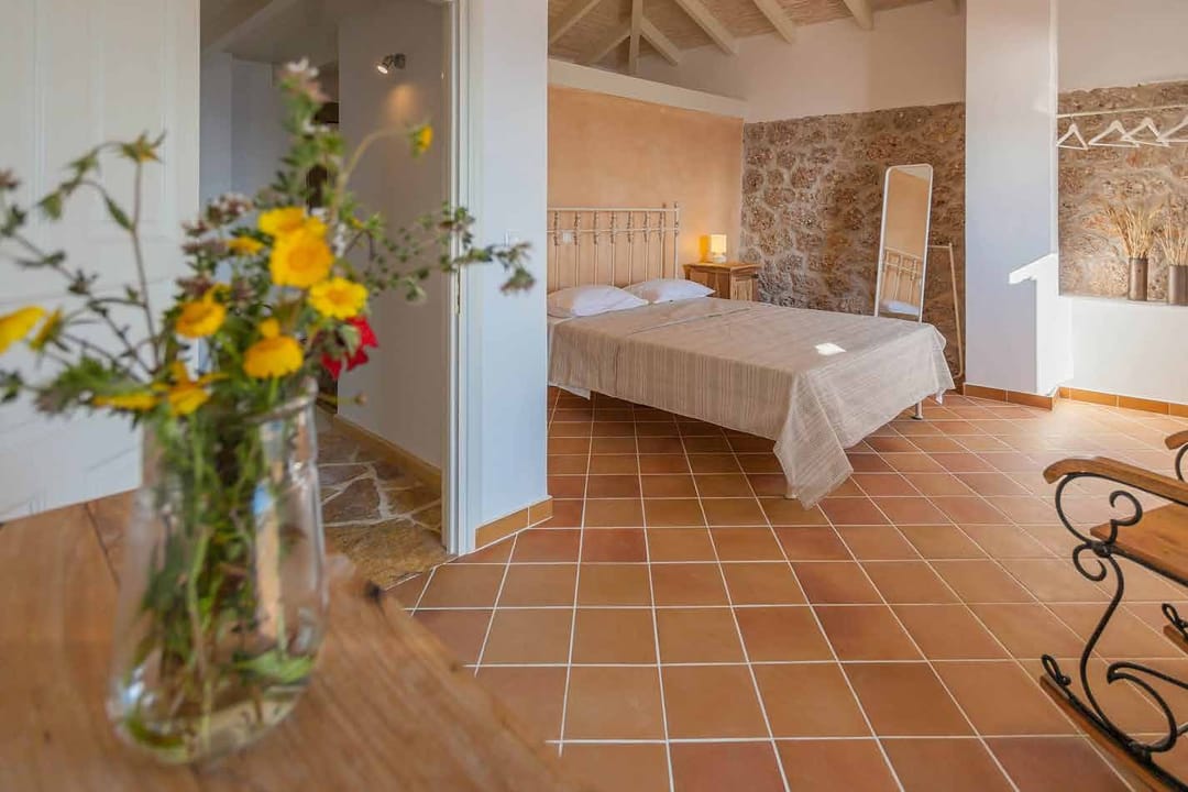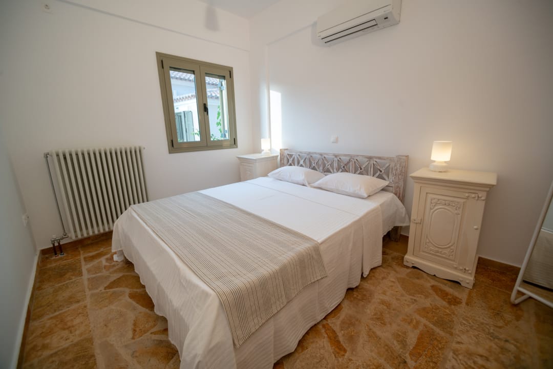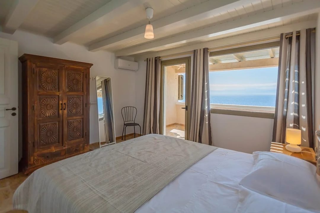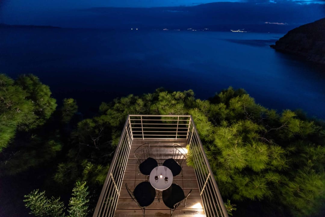 The architecture of the villas is based on the traditional style of the area, using materials that blend beautifully with the surroundings. The interiors are furnished with handcrafted traditional pieces. The minimalist approach allows guests to relax and enjoy the unique views of the Aegean Sea, nearby islands, and the adjacent forest. Ample and spacious living areas with large dining areas and comfortable leather sofas create an ideal environment for feasting and enjoying quiet moments.