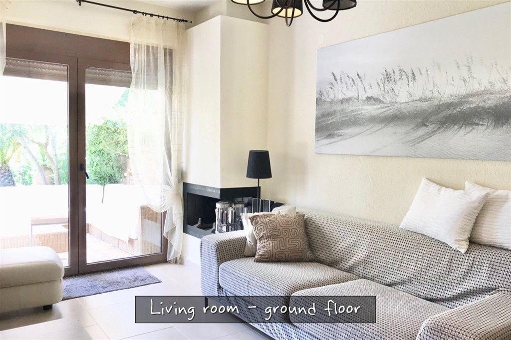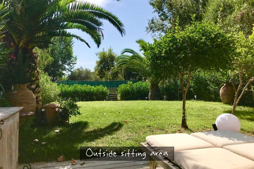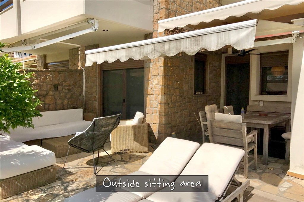 - Furnished terrace with dining table and chairs, corner sofa, sunbeds