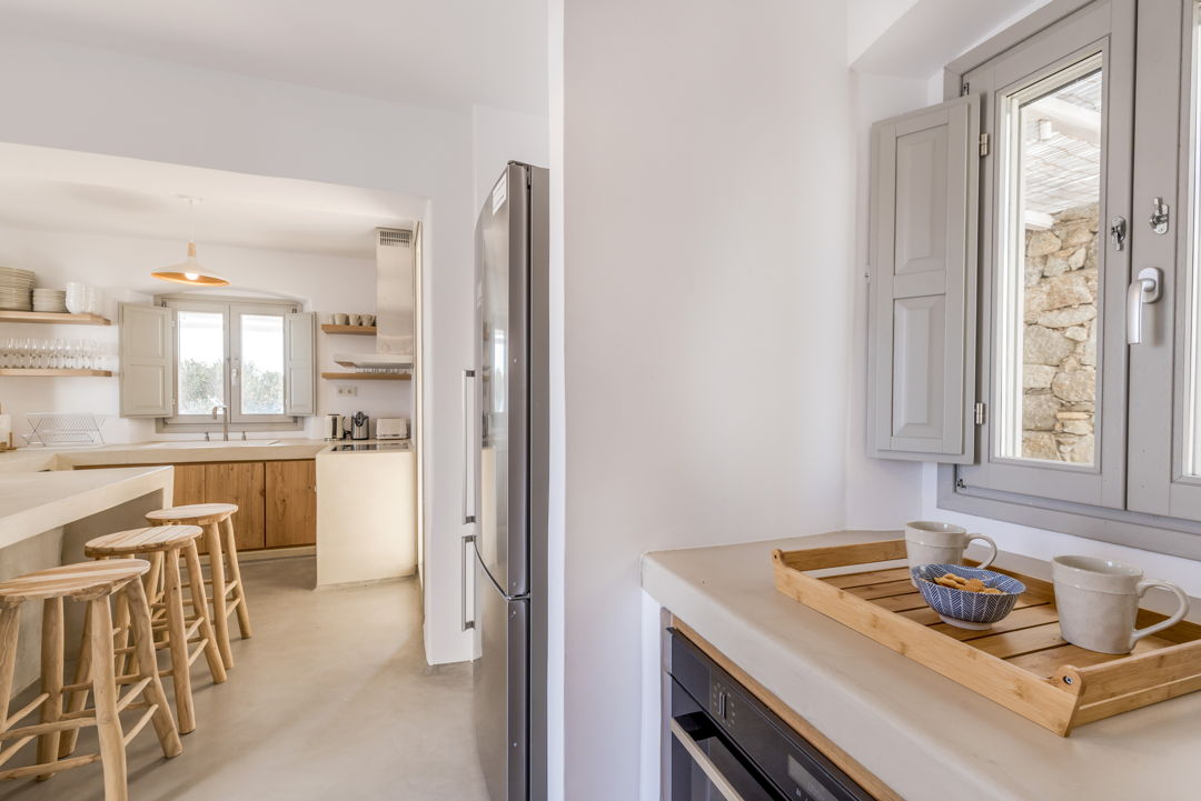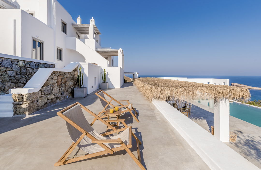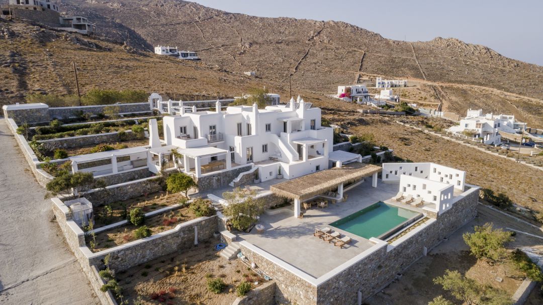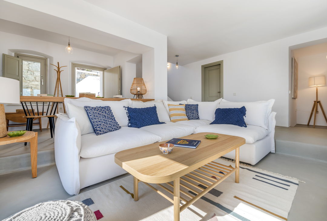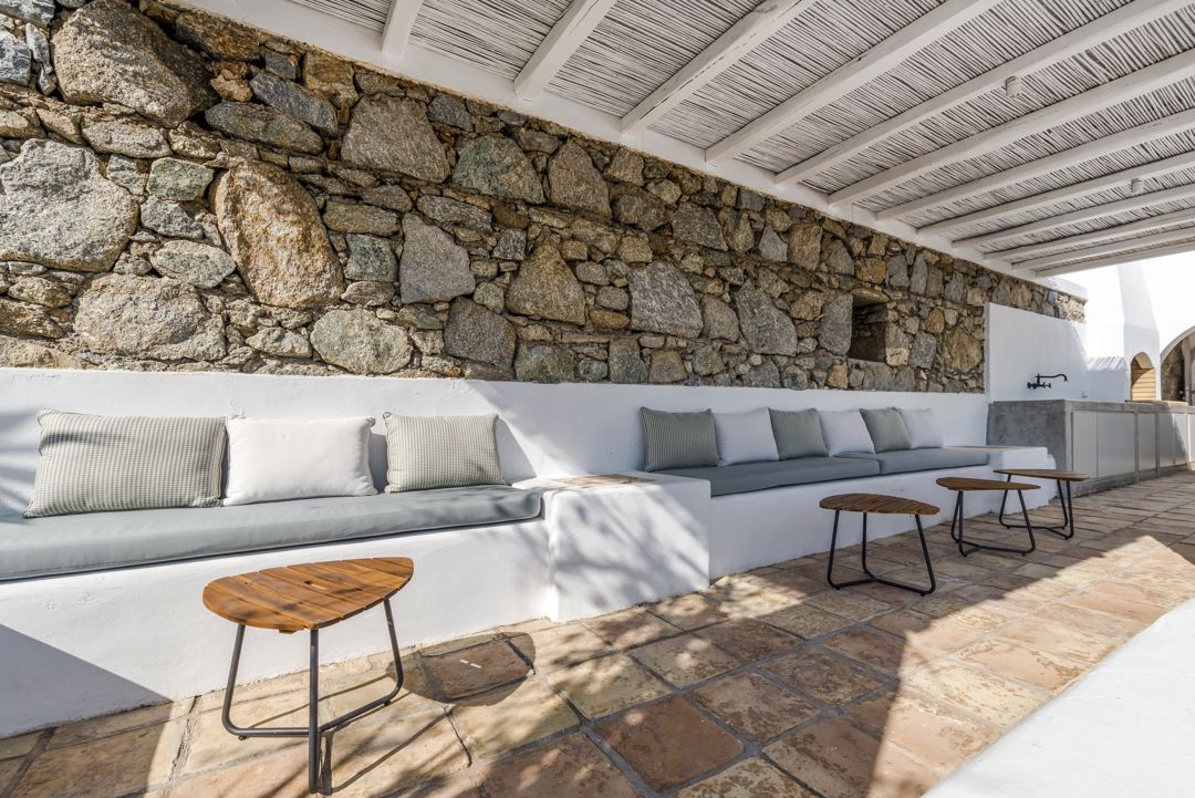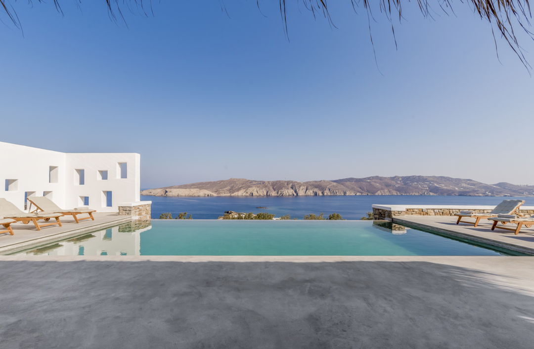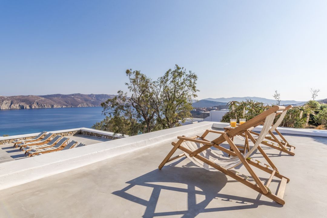 The property is ideally located in a privileged location that provides ultimate privacy. There are two wonderful and peaceful beaches, Agios Sostis and Panormos, within walking distance. The villa is just a 12 minutes drive to Mykonos town or the picturesque village of Ano Mera and 10 to 15 minutes to most of the famous island beaches and beach bars.