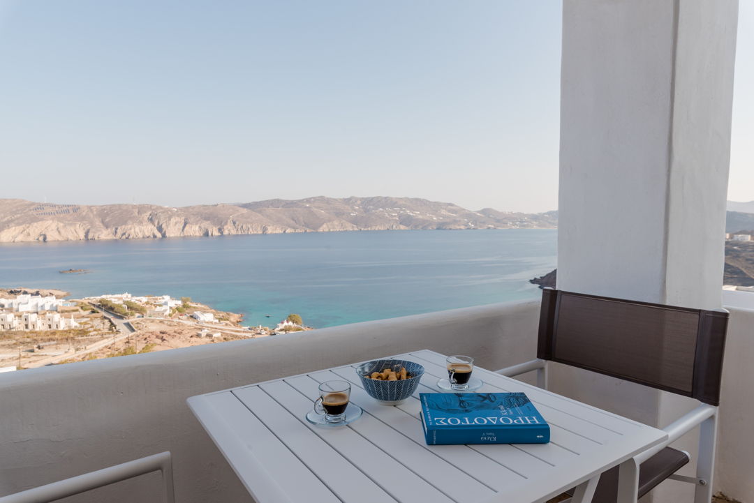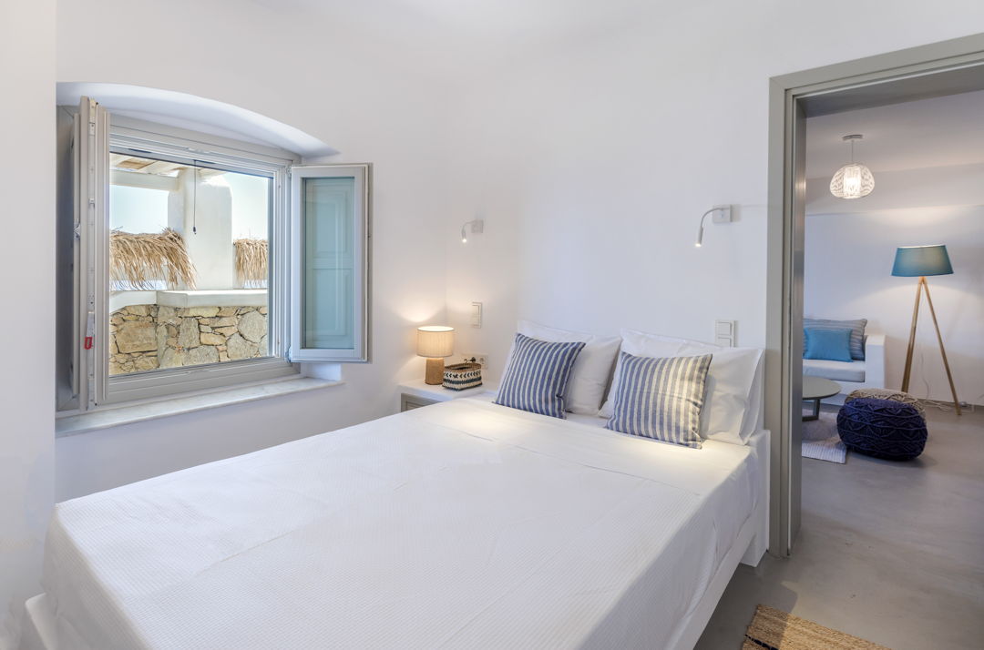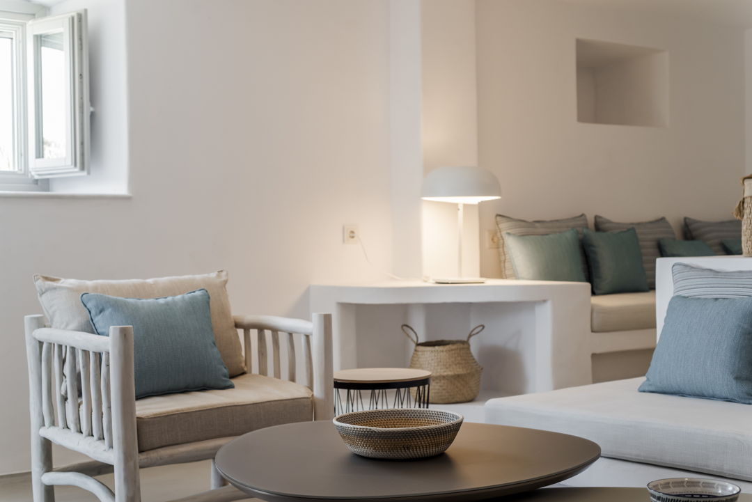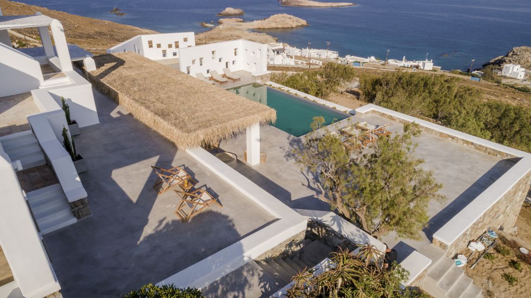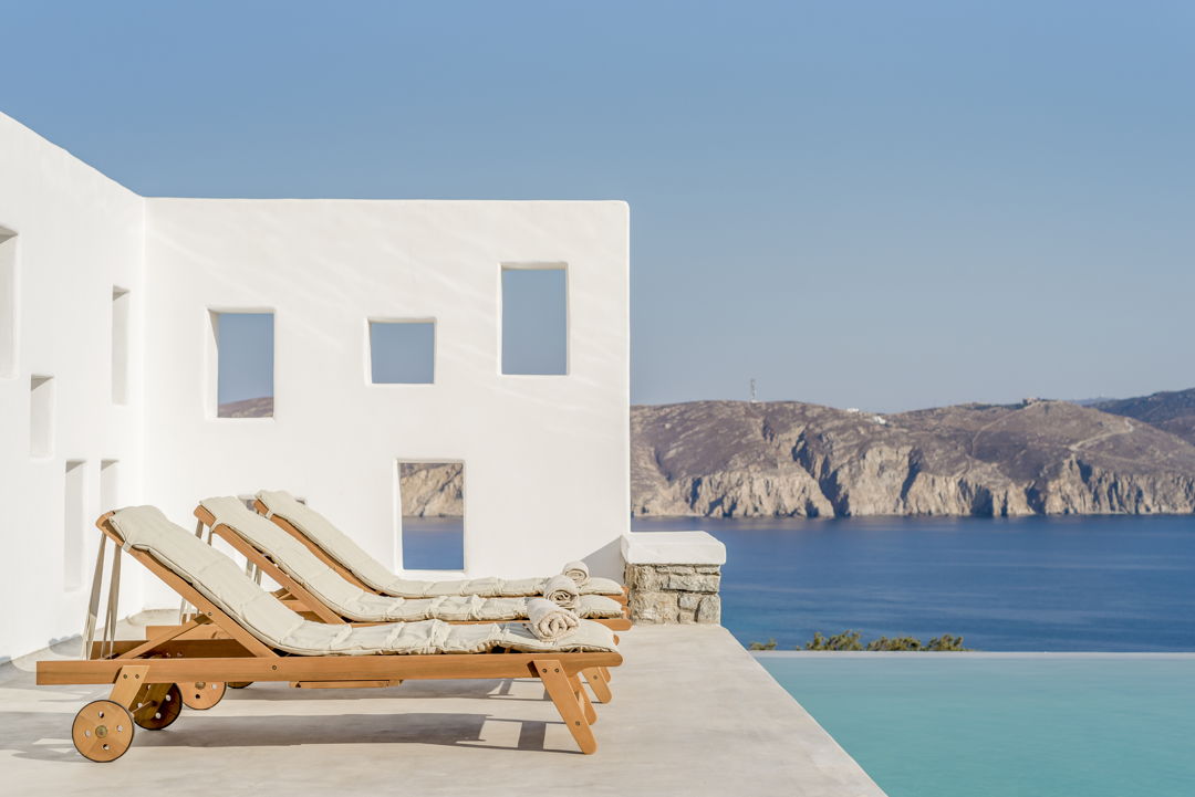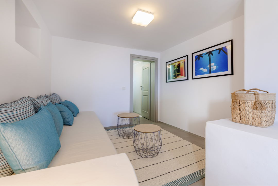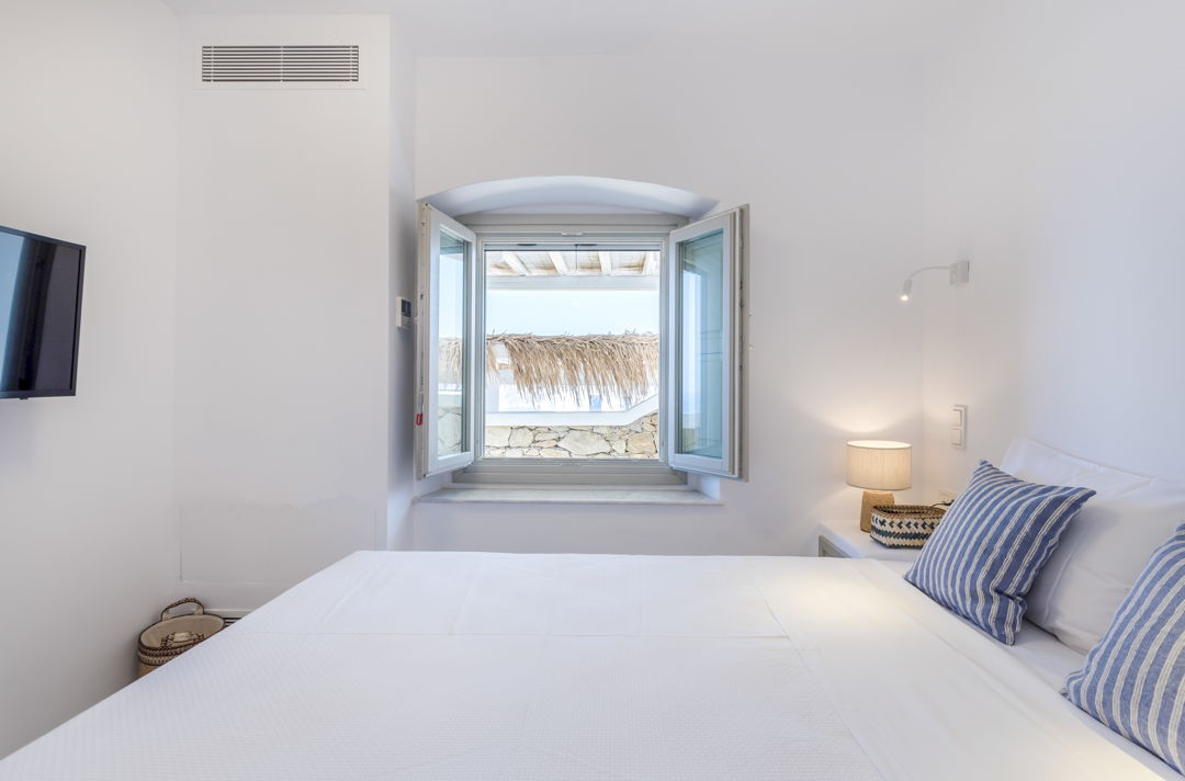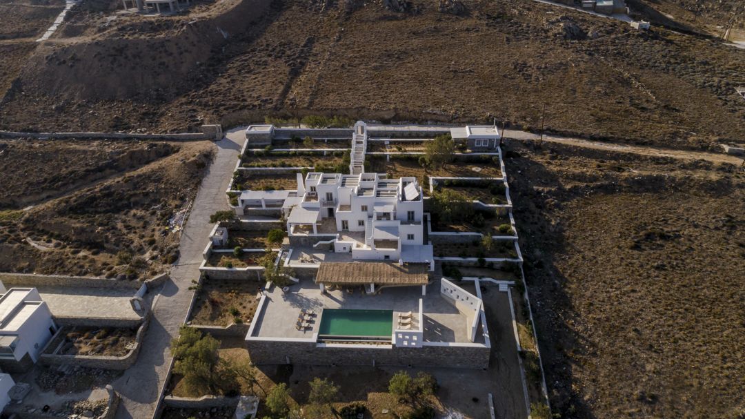 The property is ideally located in a privileged location that provides ultimate privacy. There are two wonderful and peaceful beaches, Agios Sostis and Panormos, within walking distance. The villa is just a 12 minutes drive to Mykonos town or the picturesque village of Ano Mera and 10 to 15 minutes to most of the famous island beaches and beach bars.