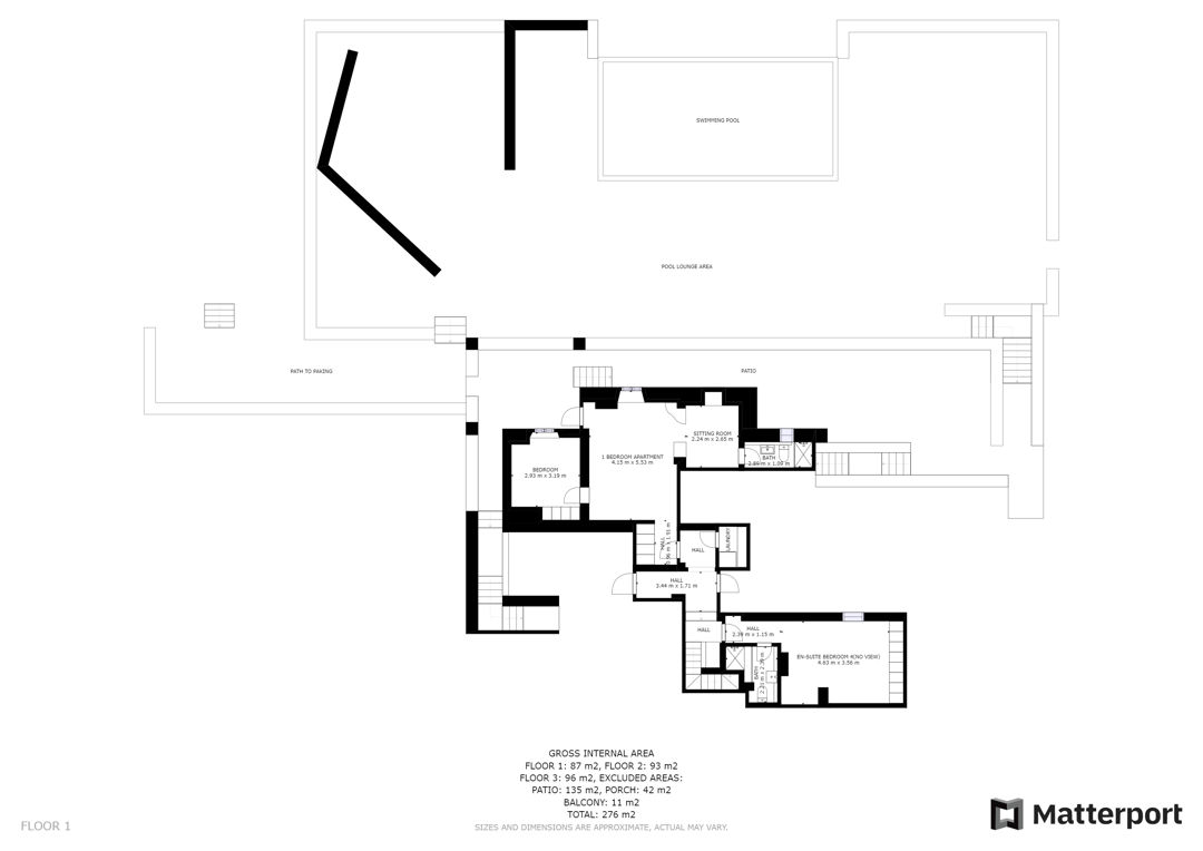 - 4th bedroom with double bed, lounge area, bathroom and direct access to the pool area