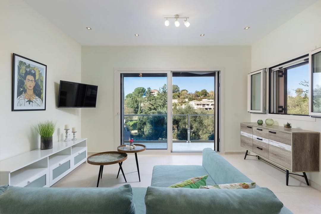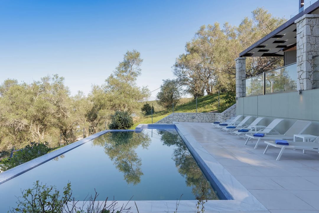 Stylish contemporary villa Bono with 3 bedrooms and a private pool, located just a 2-minute walk from the beach, on the northeastern part of Corfu Island, available for rent.
