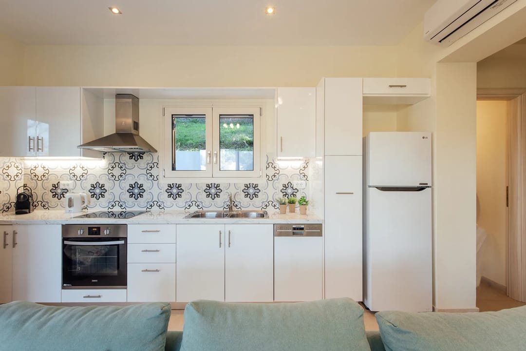 - Refrigerator, oven, stove, dishwasher, microwave oven, electric kettle, Nespresso coffee machine, toaster, cooking utensils