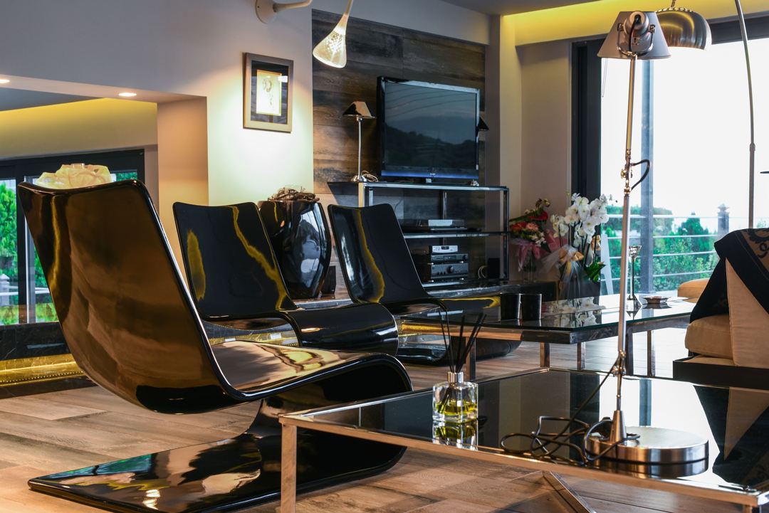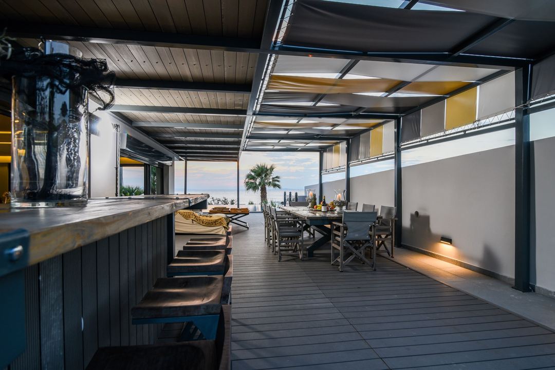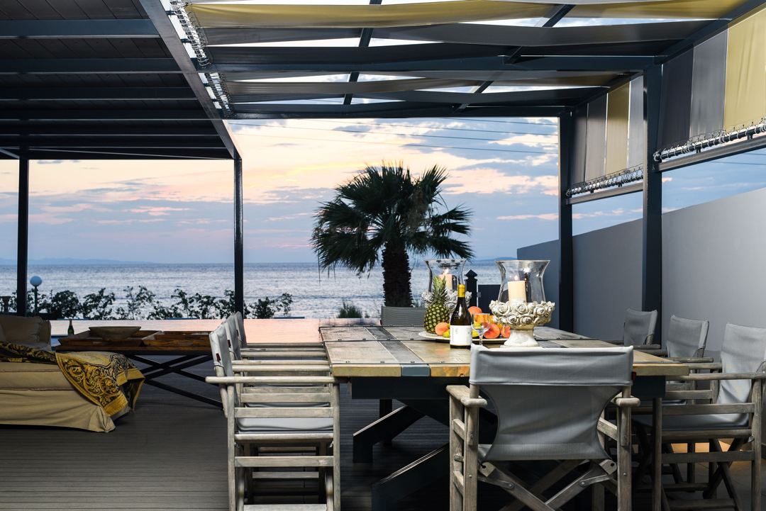The villa is situated only 55 km from the centre of Athens and 10 km from the Ancient Temple of Poseidon in Sounio with the magnificent sunset, in the private housing estate, on the Southern Coastline of Athens Riviera. The complex is located at the most beautiful spot in the area, right on the beach, with an unlimited view of the sea.