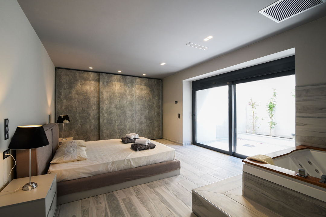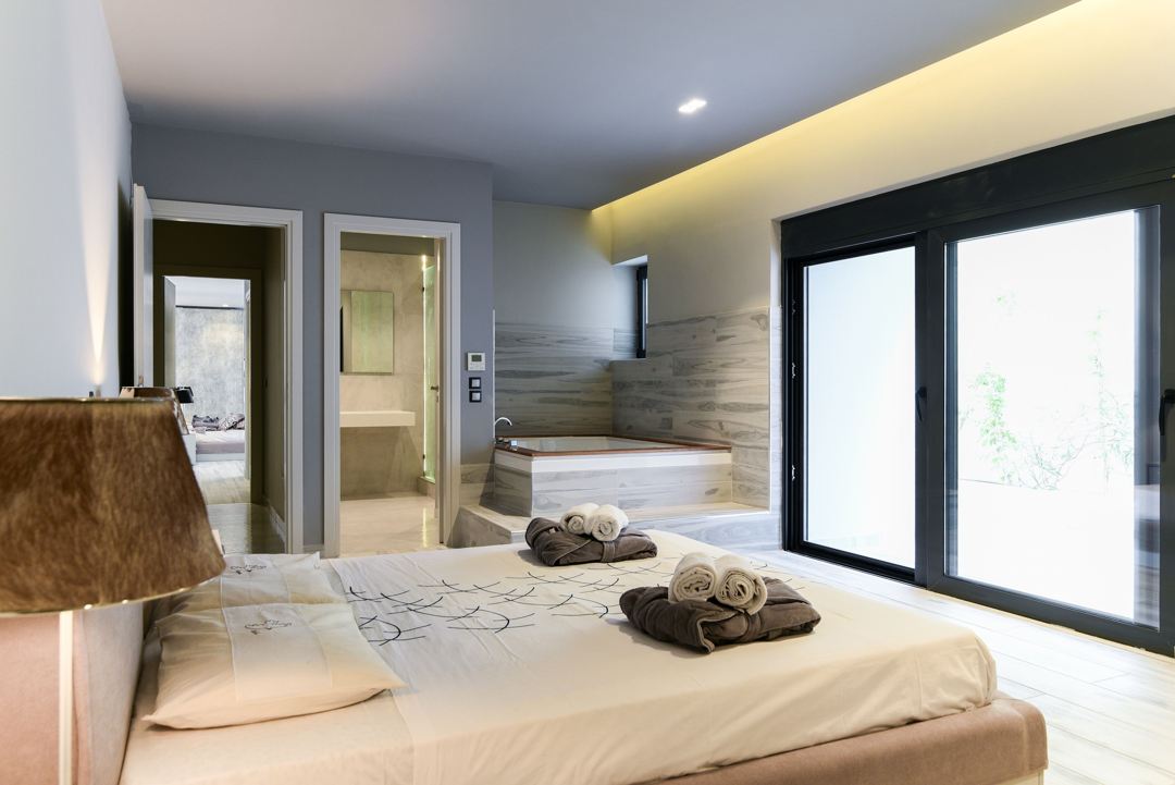 - 1st bedroom with double bed, Jacuzzi, and en-suite bathroom