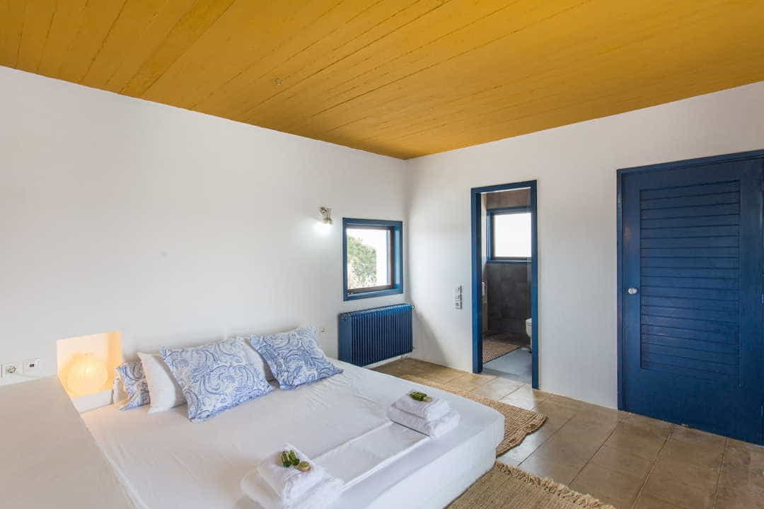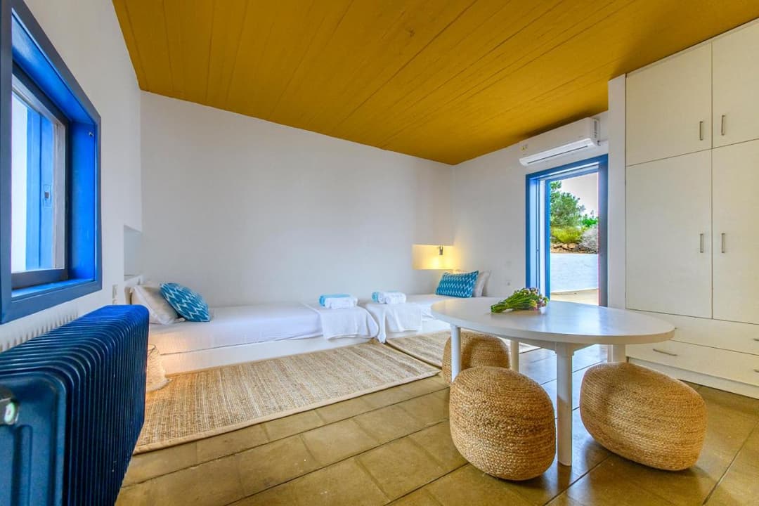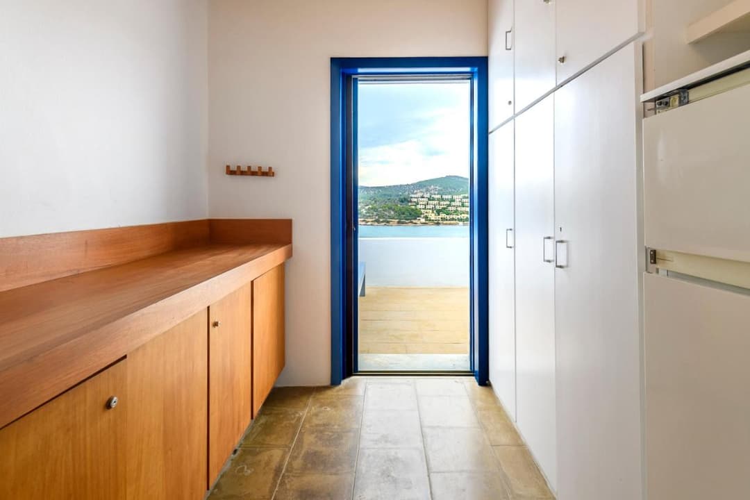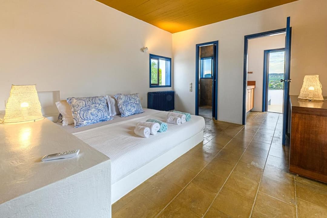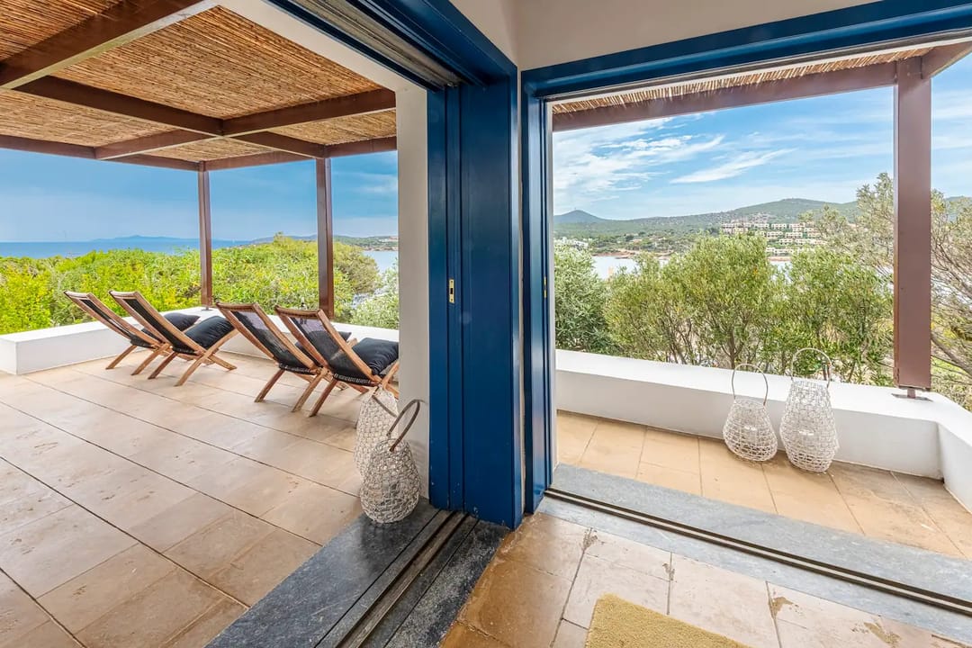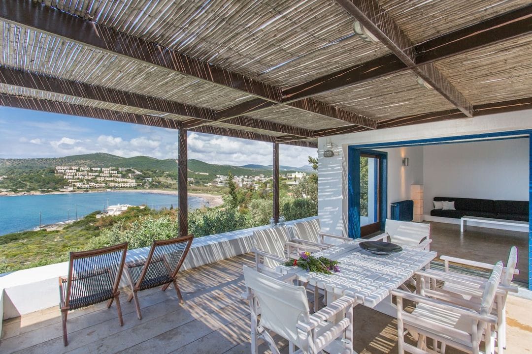 Spacious villa Deni with 6 bedrooms, located on a hill and providing a breathtaking view to the Aegean sea, only 60 meters from the beach, next to the Cape Sounion, on the East Coast of Attica for rent.