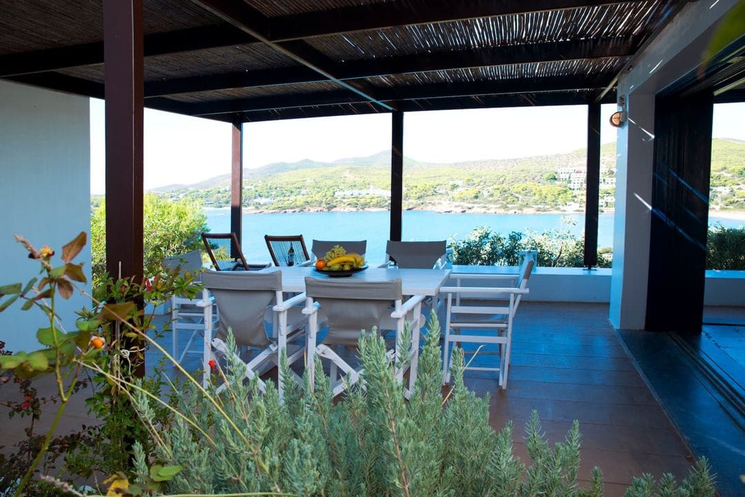 - Large verandah furnished with table and chairs and with breathtaking sea view and Temple of Poseidon