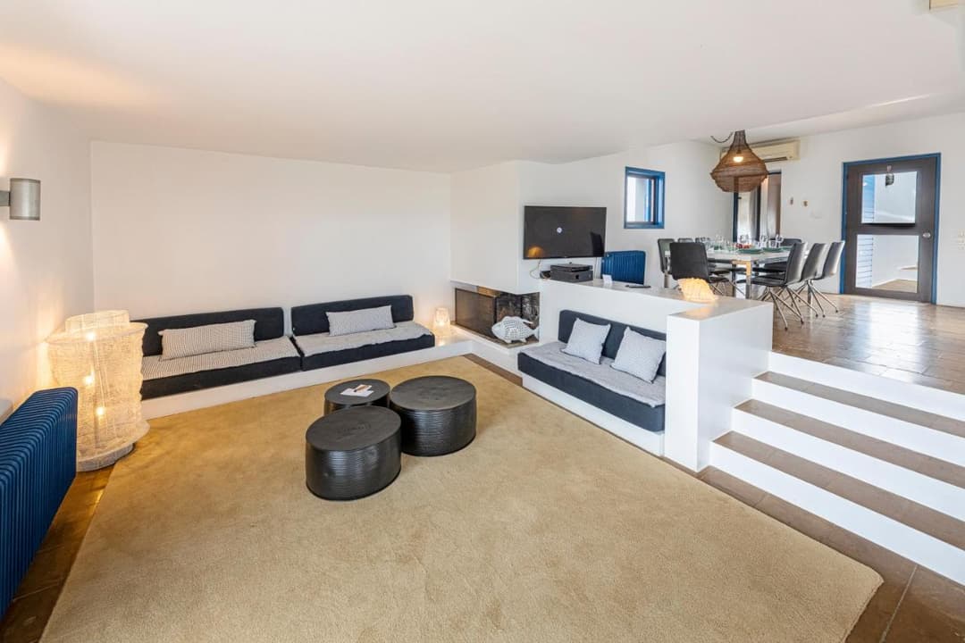 - Living room with panoramic windows facing the sea, with sofa, Satellite TV, DVD player with Dolby surrounding system
