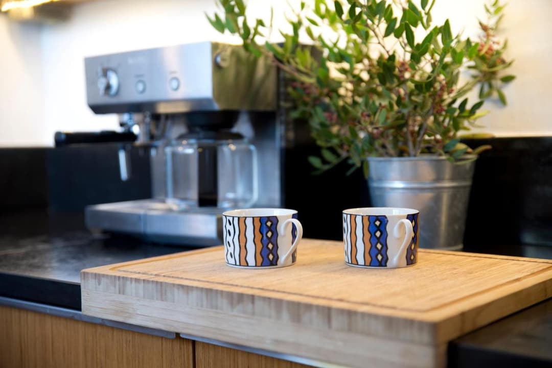 - Refrigerator, oven, stove, kitchen hood, electric kettle, set of pots and pans, filter coffee maker, dishwasher