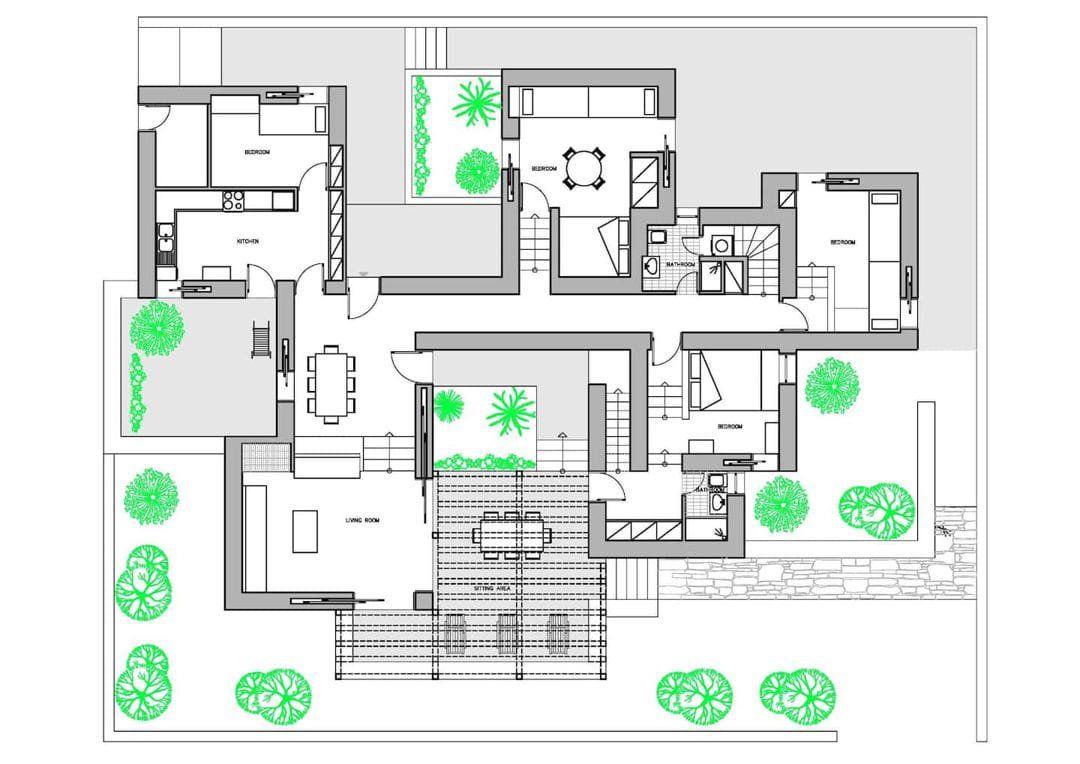 This spacious villa is constructed with respect for the nature surrounding it, as it fits perfectly at the slope of a hill by dividing it into smaller fragments. The design of the lodging incorporates the very best in indoor and outdoor living whilst ensuring the maximum of privacy.