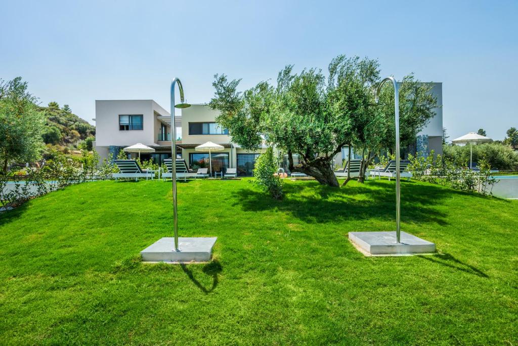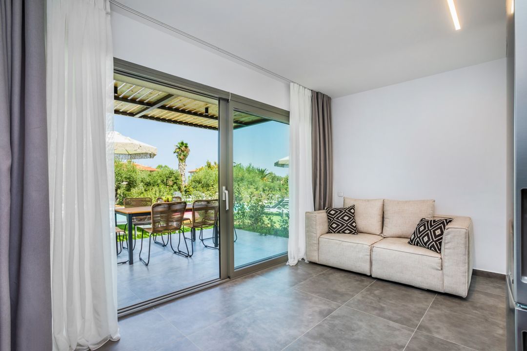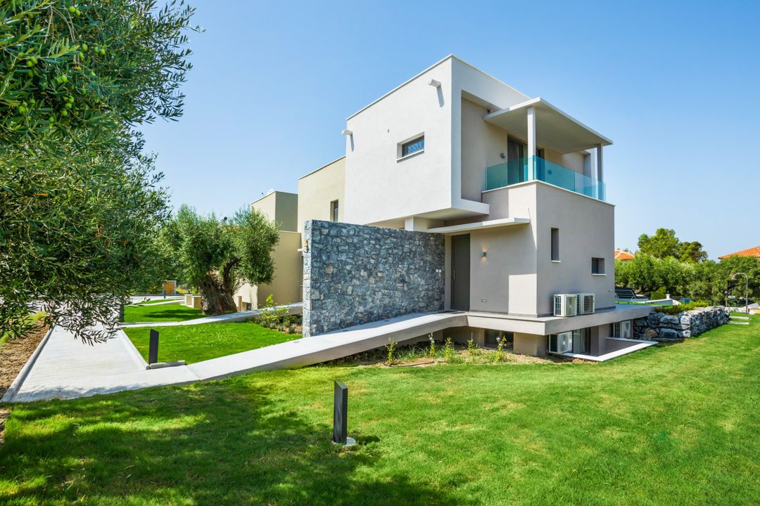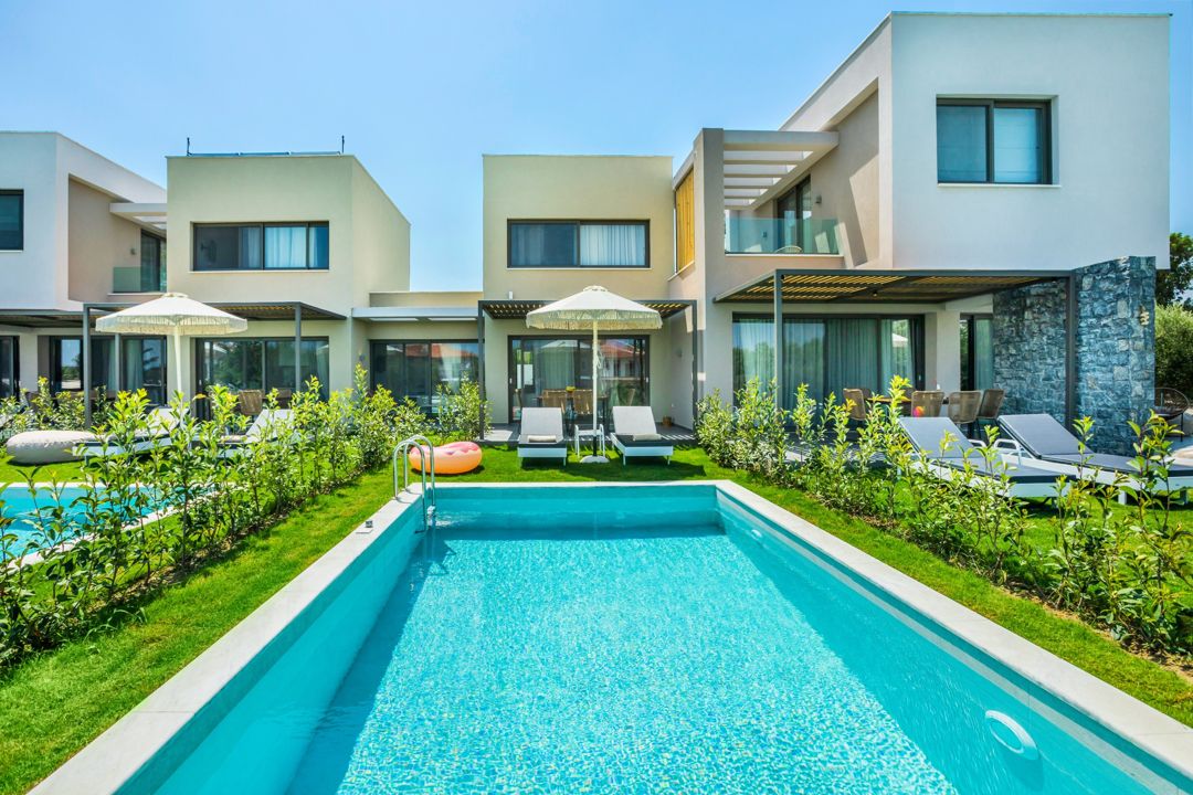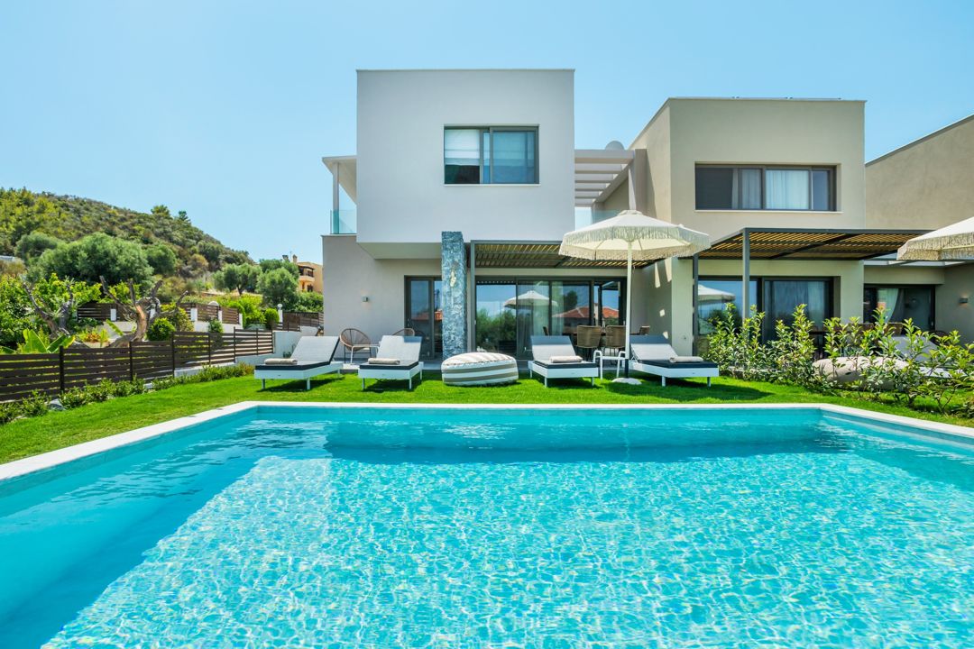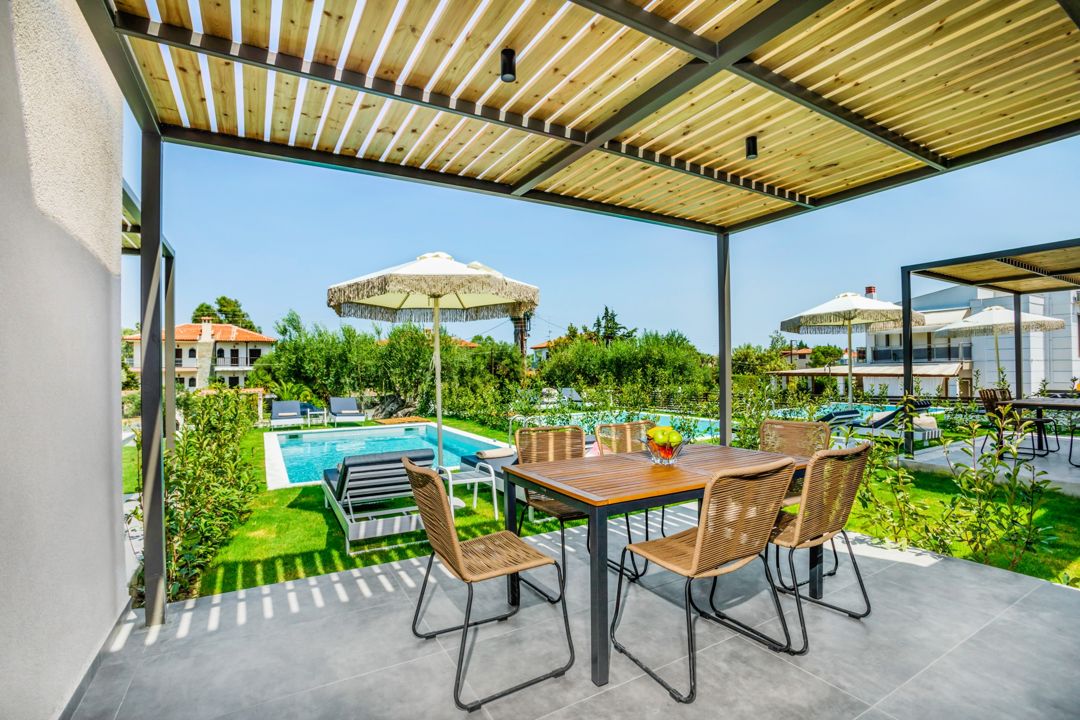 Brand new, modern villa Dina with 3 bedrooms and private pool, just 200 meters from the sandy beach, in Pefkohori Village, Kassandra, Halkidiki for rent.