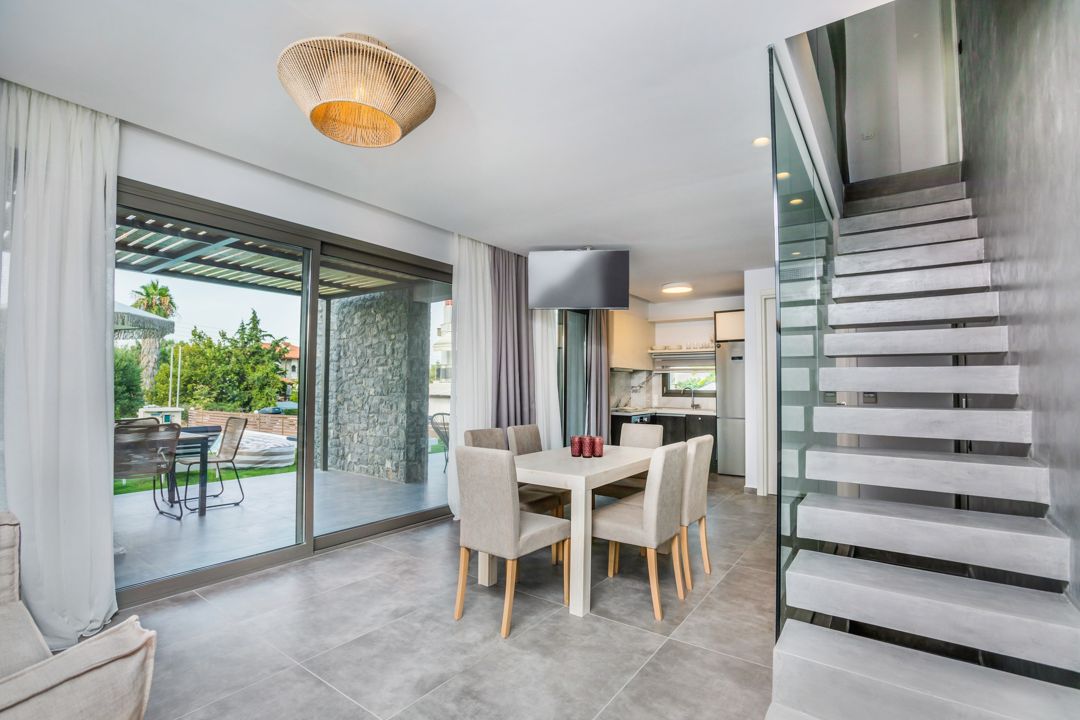 The villa is located in a private complex of 4 villas that was built in 2021. Each villa with 3 bedrooms, an outdoor area and a private pool with a Jacuzzi, where you can relax with the rest of your family and friends. A unique architectural style that combines summer senses with luxury design and high-tech electronic devices.