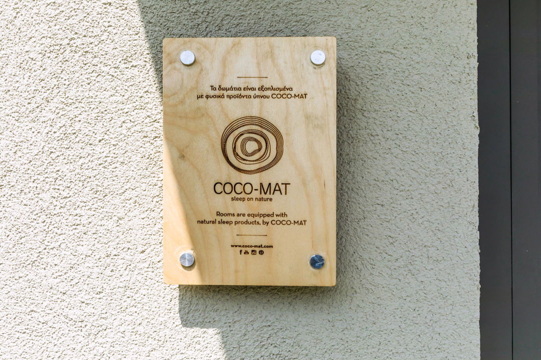 - All beds with carefully selected COCO-MAT natural mattresses and pillows. COCO-MAT is a firm that constructs handmade mattresses, pillows and other sleep products by using naturally replenished raw materials such as cotton, seaweed, wool and wood sourced locally in Greece and Europe.