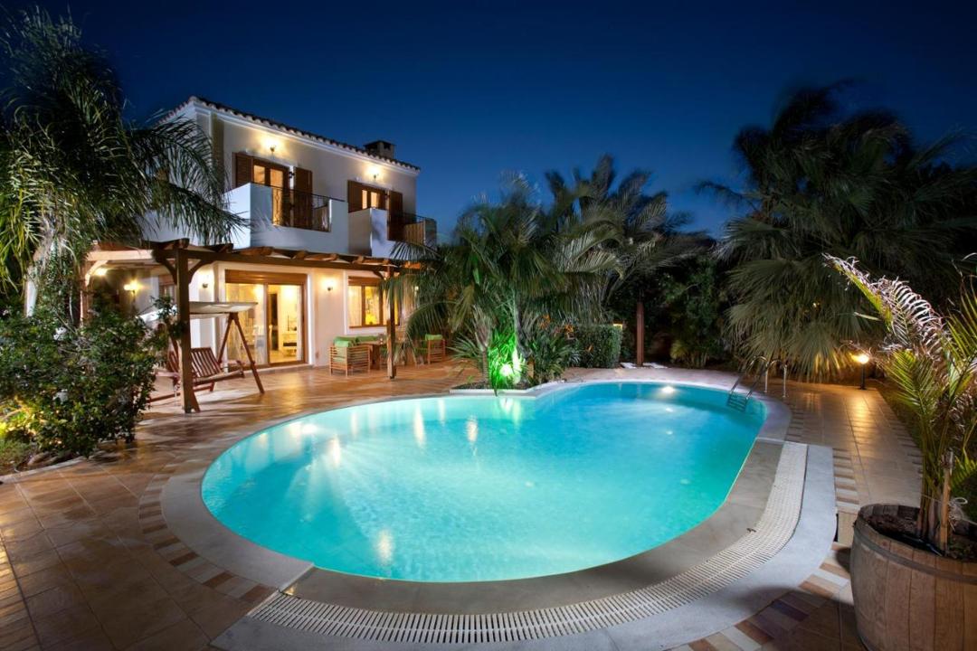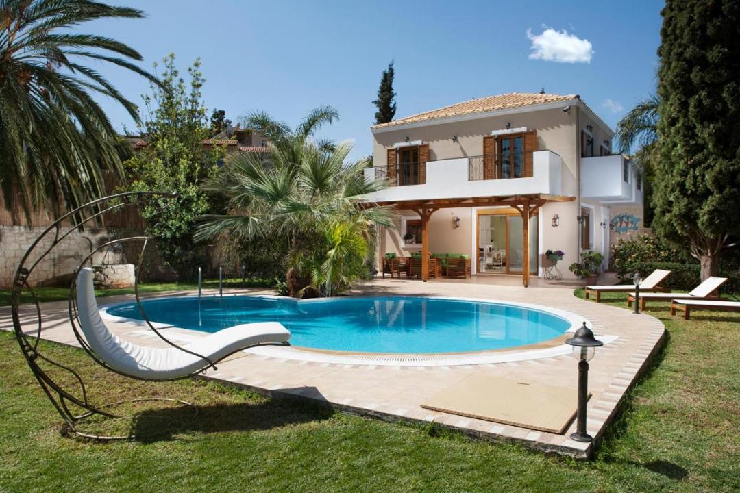 Elegant comfortable Dora Villa with 3 bedrooms and a private pool, in a 4-villas complex near the most popular tourist resort of Hersonissos, on the island of Crete, for rent.
