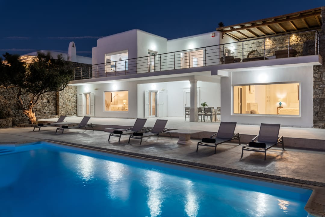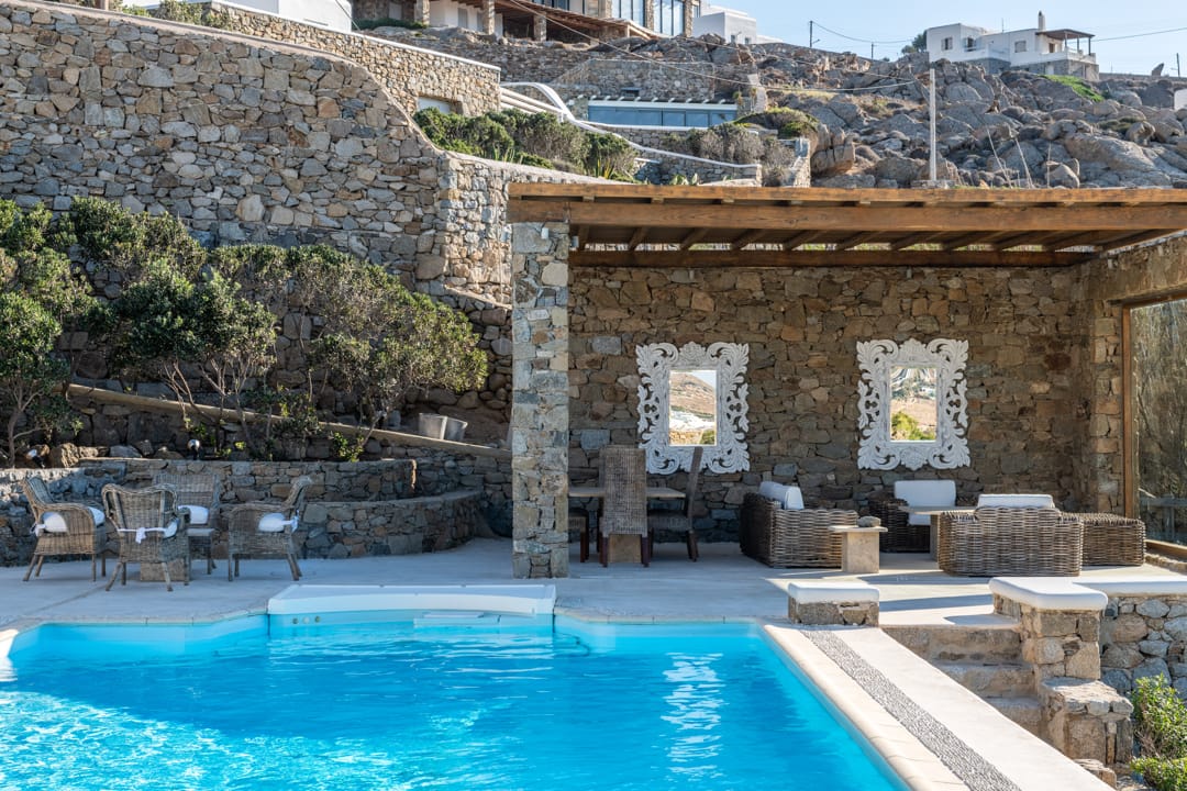 Spacious elegant villa Doris with 5 bedrooms and private pool in Mykonos Island for rent.