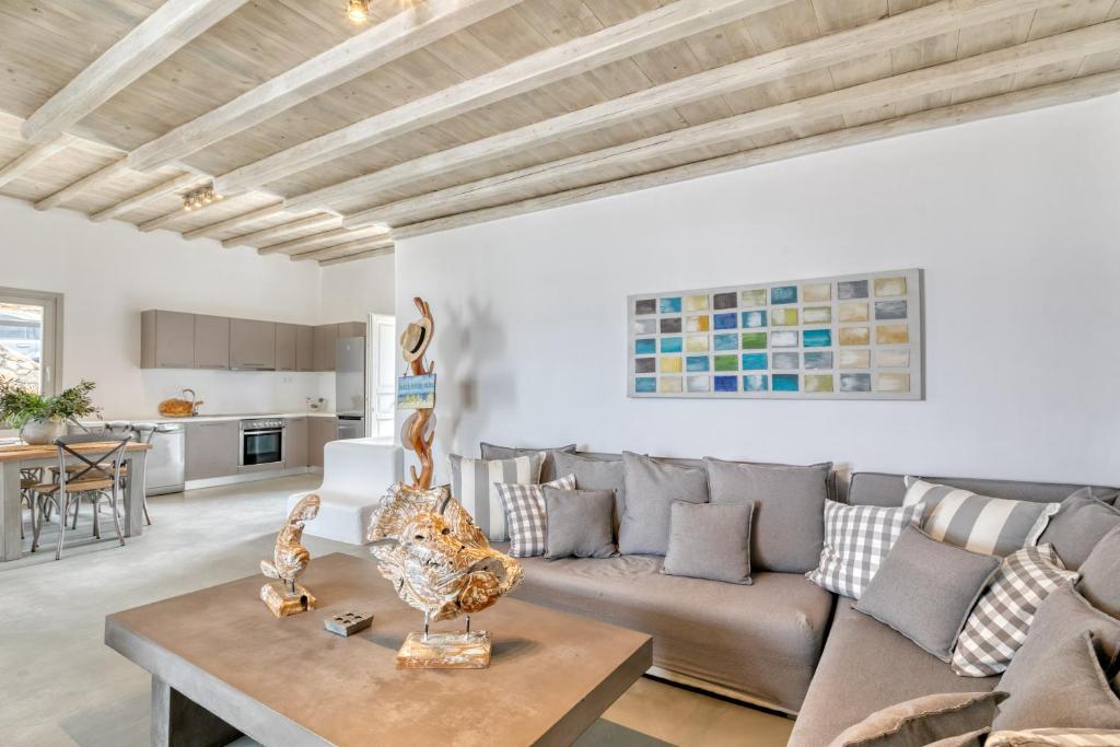 Just 5 km from Mykonos Town, the airport and the ports, the villa provides its guests with the perfect combination of proximity to beaches, restaurants and entertainment as well as privacy and serenity.