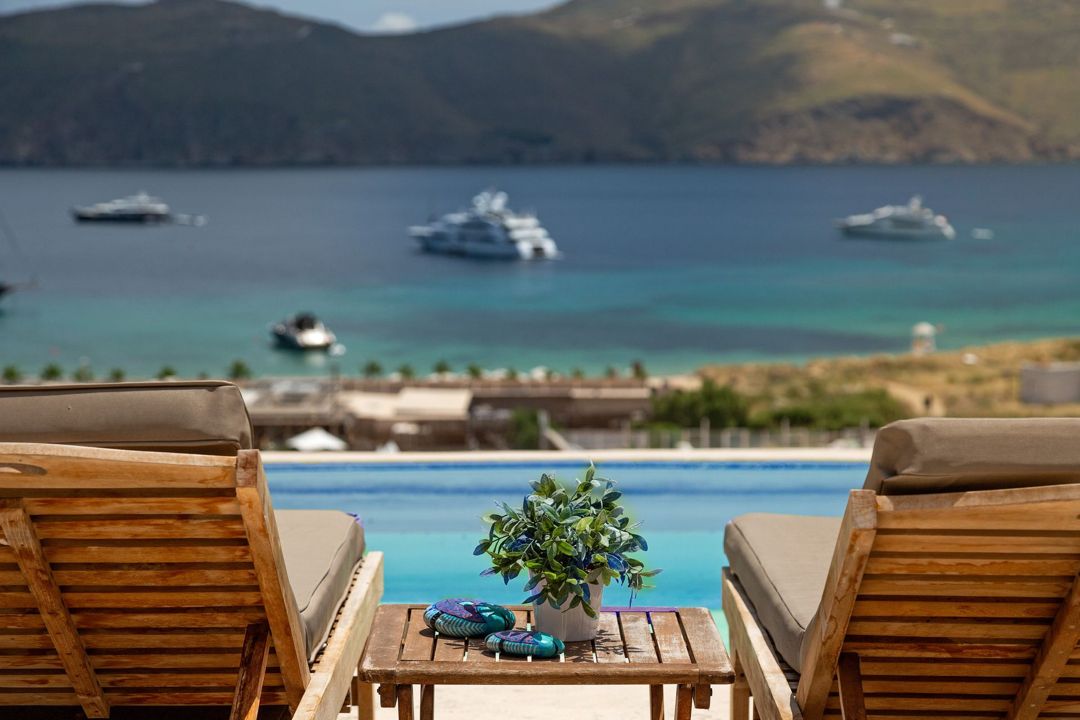 The Villa is located within a gated complex of private luxury villas with sweeping views of Panormos Bay. The resort is set on 55,000 meters area and is situated in one of the most scenic locations of the island.