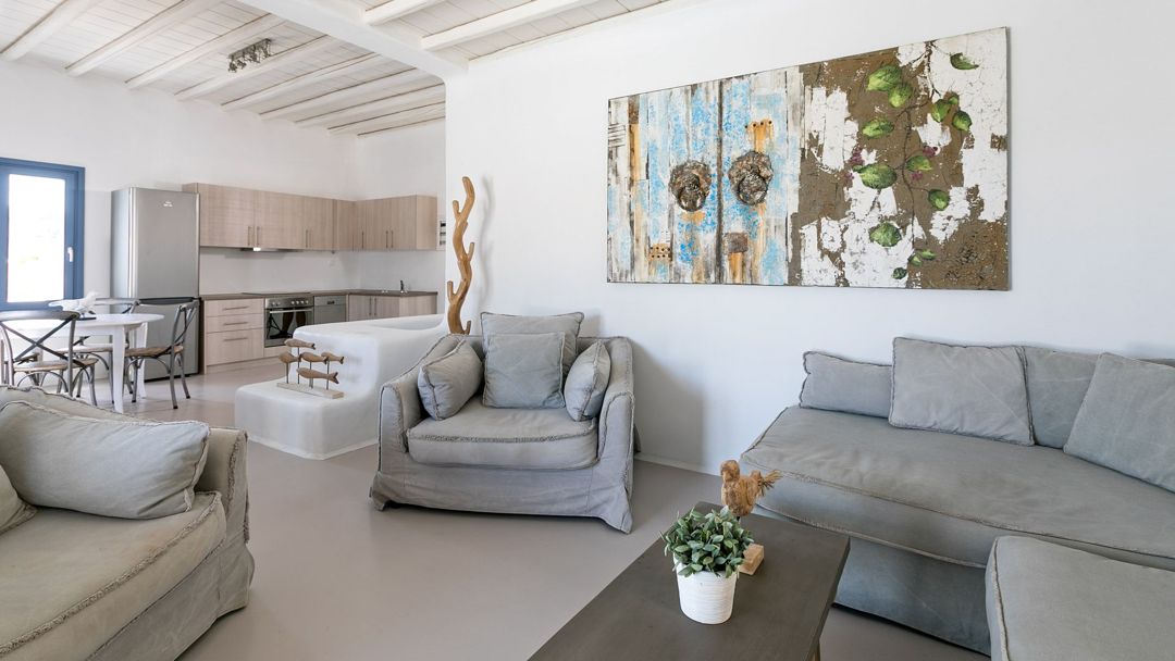 Just 5 km from Mykonos Town, the airport and the ports, the villa provides its guests with the perfect combination of proximity to beaches, restaurants and entertainment as well as privacy and serenity.