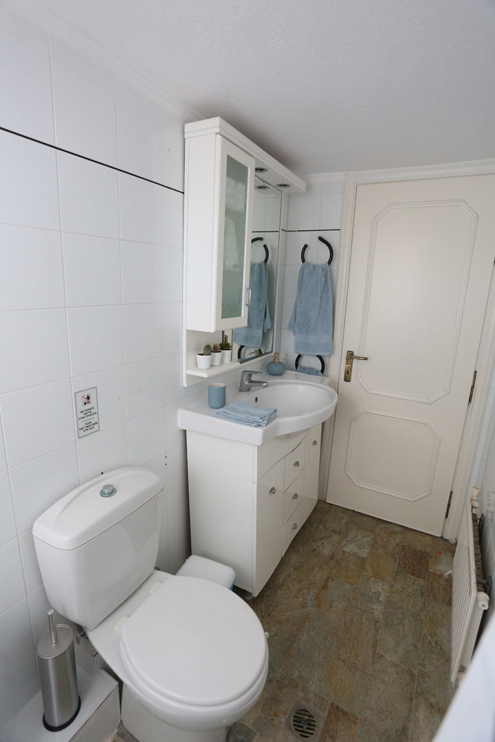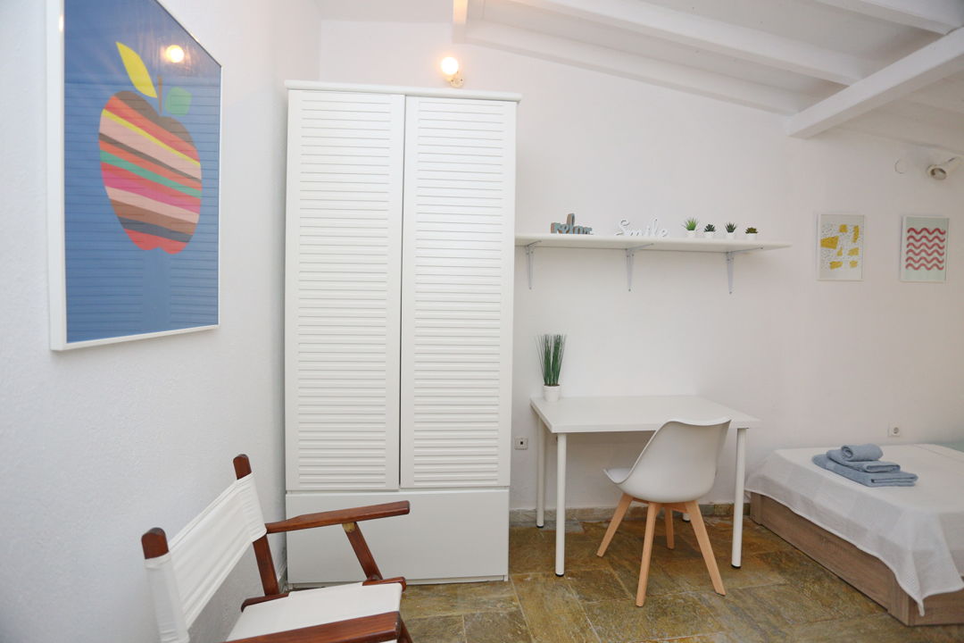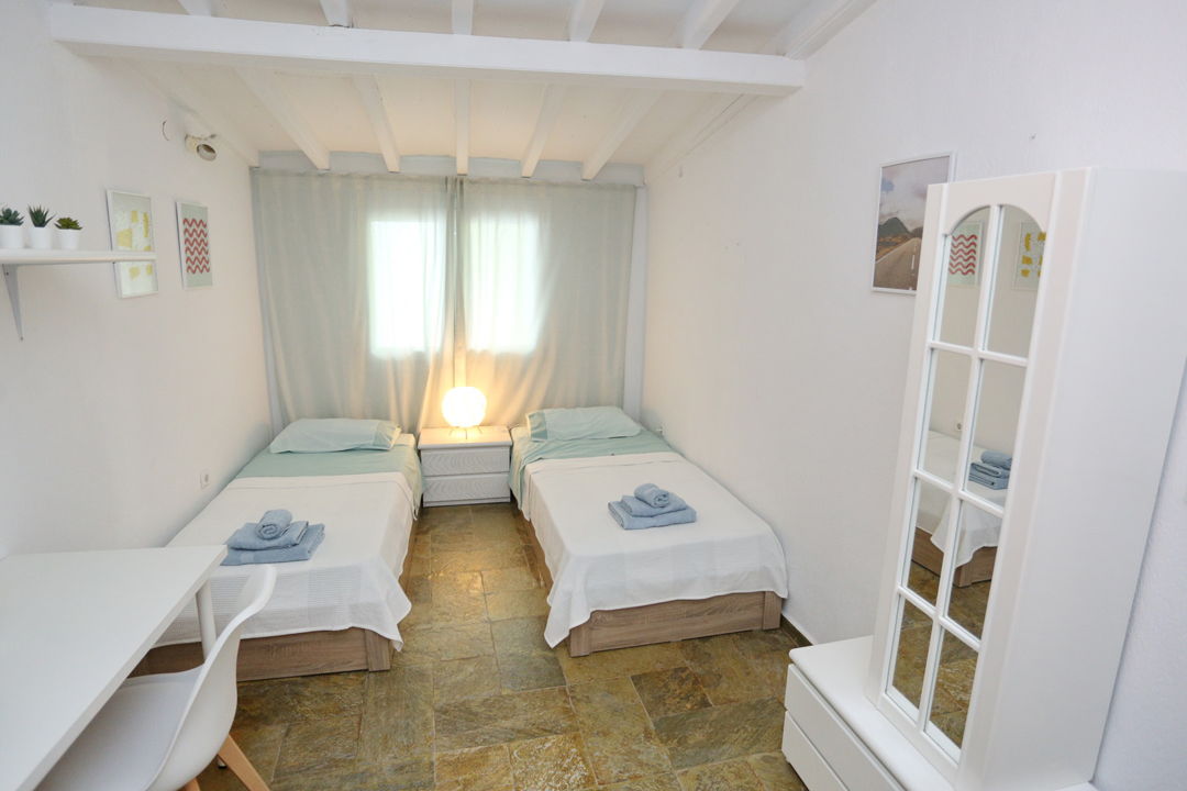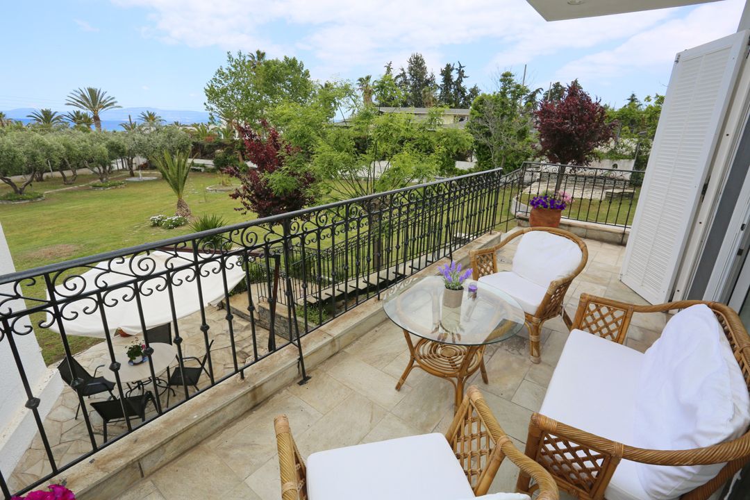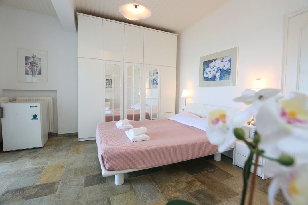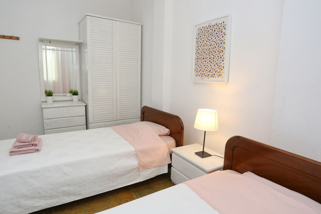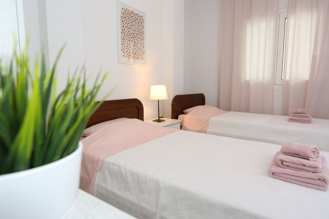 - 2nd bedroom with a double bed, wardrobe, mini-fridge, TV, and a balcony with table and chairs overlooking the sea