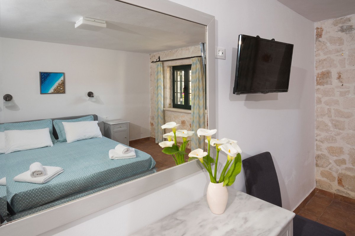 To ensure the utmost satisfaction for any guest, the owners carefully fitted the villa out with all the amenities and modern facilities necessary, so that the daily needs of the guests are fully covered. The villa’s fine and traditional decoration, based on wood and stone, blends harmonically with modern-day technology equipment to create a sophisticated, yet simple and comfortable atmosphere.