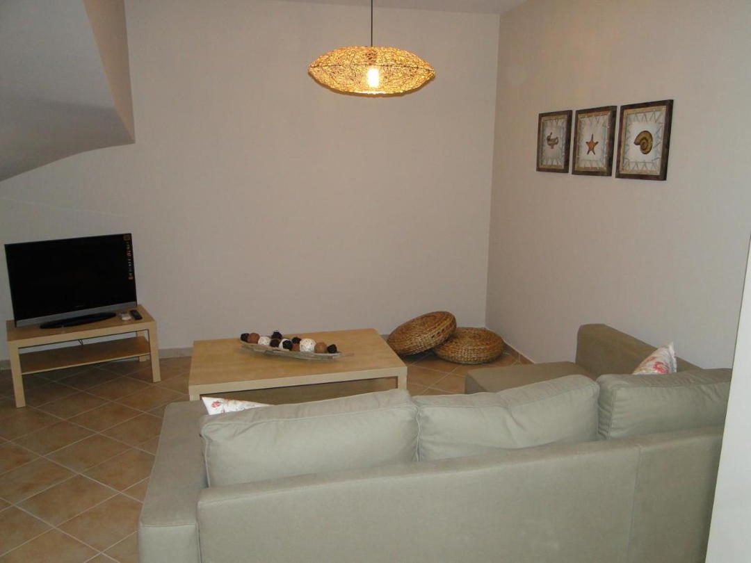 - Living room with sofa bed, TV, fireplace and air conditioning