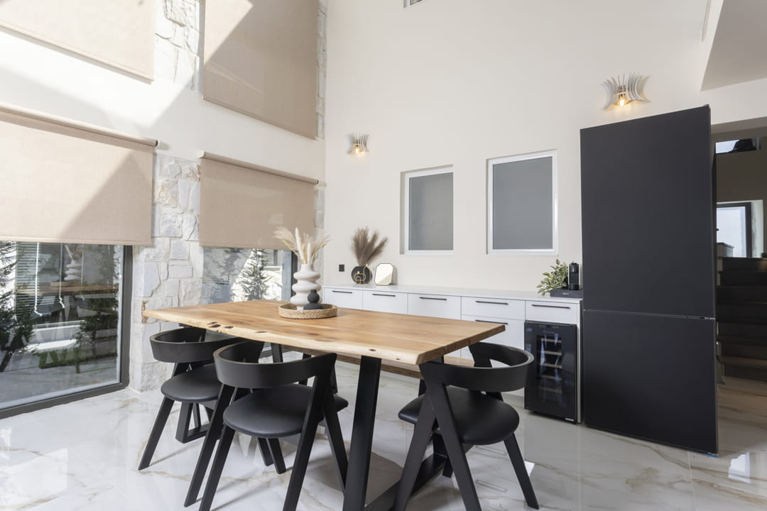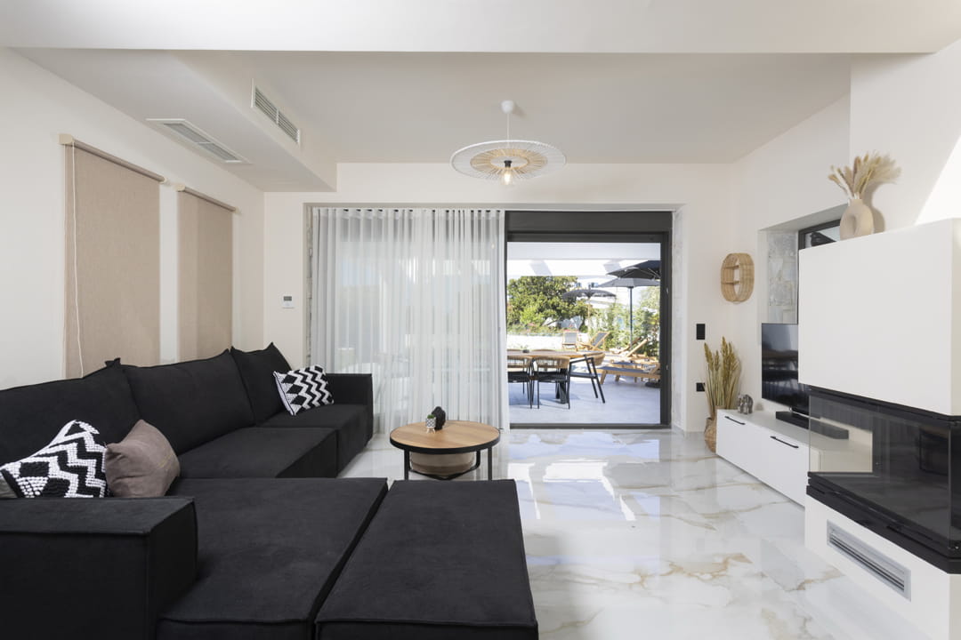 The spacious, comfortable villa is located in a complex of eight villas, each with its swimming pool. The villa is new and is available for its second rental season. Guests will appreciate the villa’s modern amenities and stylish décor.