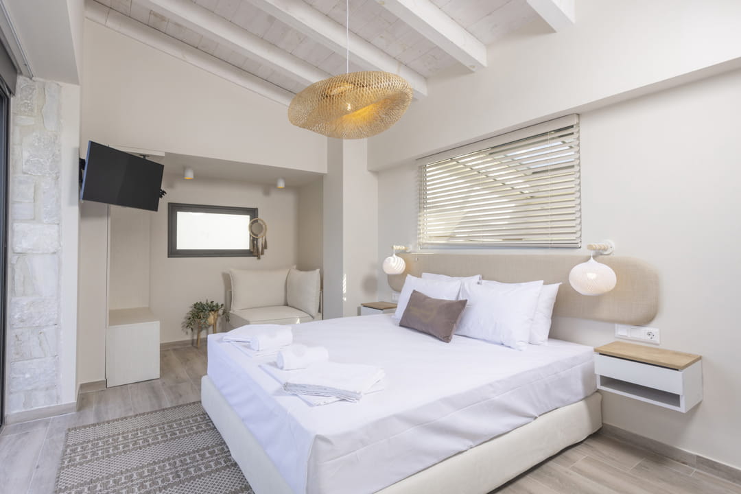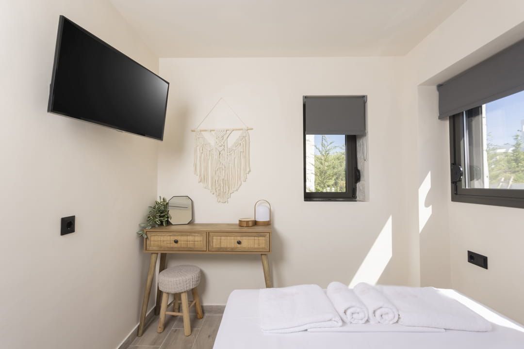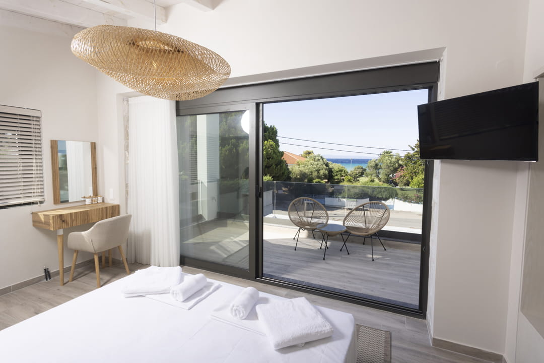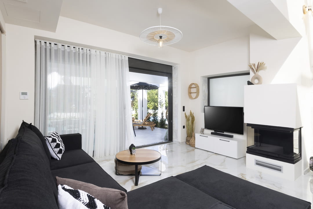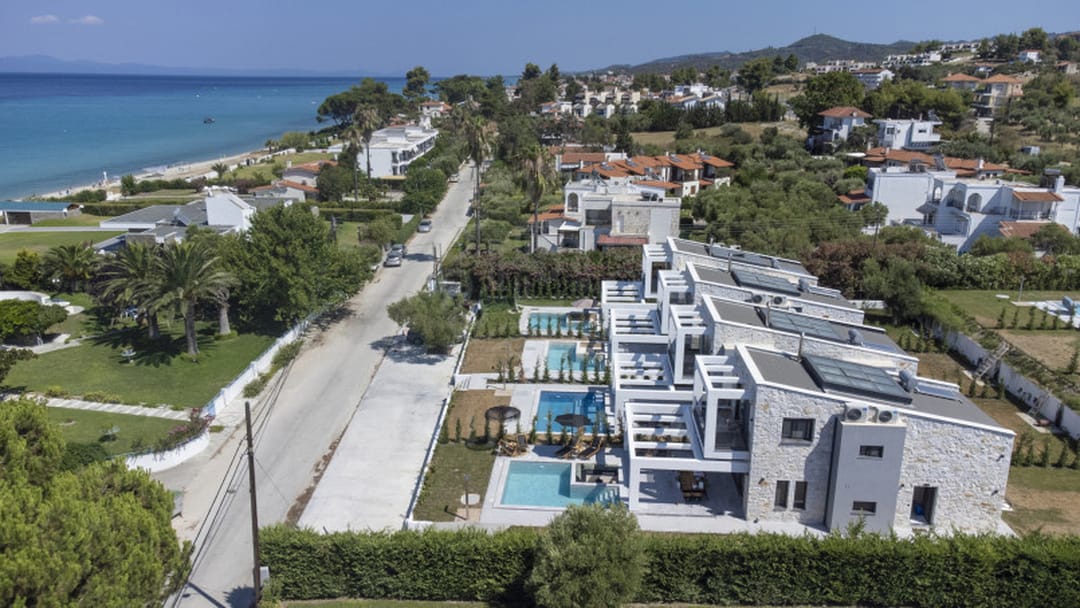 A long sandy beach dotted with small pebbles is a 2-minute stroll away. The beach is not organized. At a distance of 200 meters, there is a small beach bar. The popular tourist hub of Hanioti is just 1 kilometer away, boasting a variety of shops, taverns, and cafes. The villa’s location ensures a tranquil and peaceful atmosphere, ideal for unwinding and enjoying the surrounding beauty.