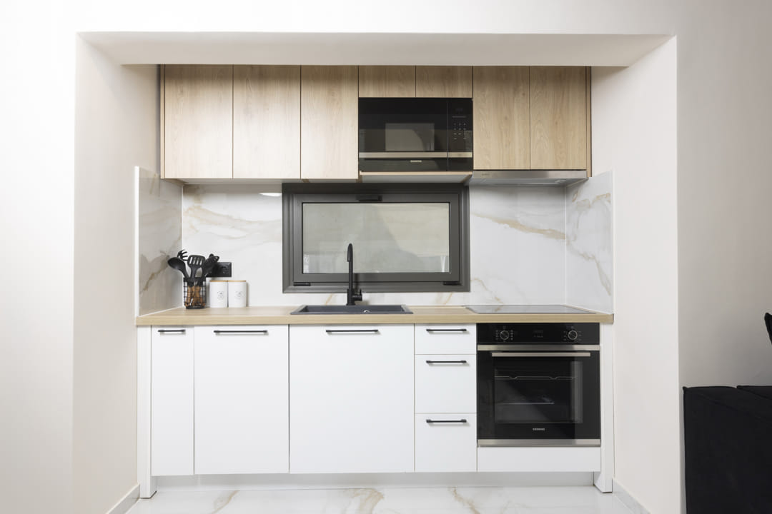- Dishwasher, refrigerator/freezer, wine cooler, stove, oven, Nespresso coffee machine, kitchenware