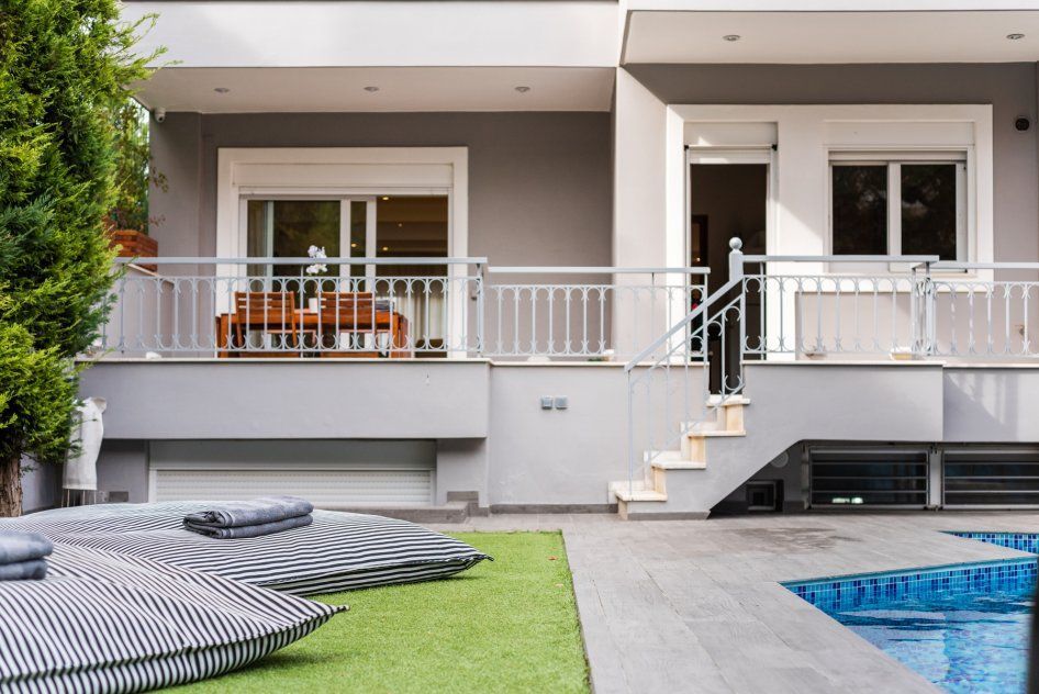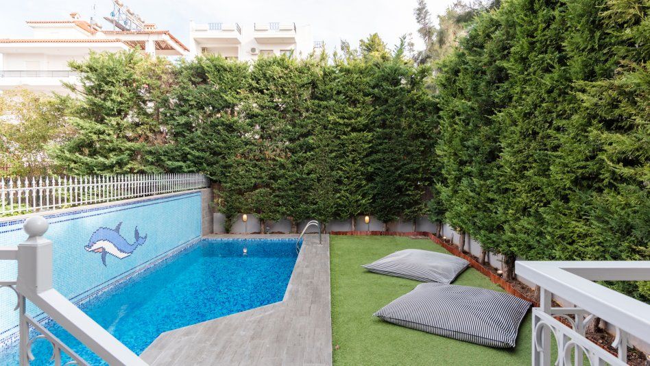 Astonishing villa Galina with 5 bedrooms and a private pool in a quiet area within walking distance from the beach, in the Athens Riviera, for rent.