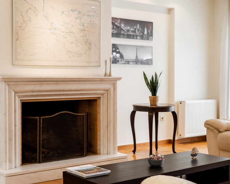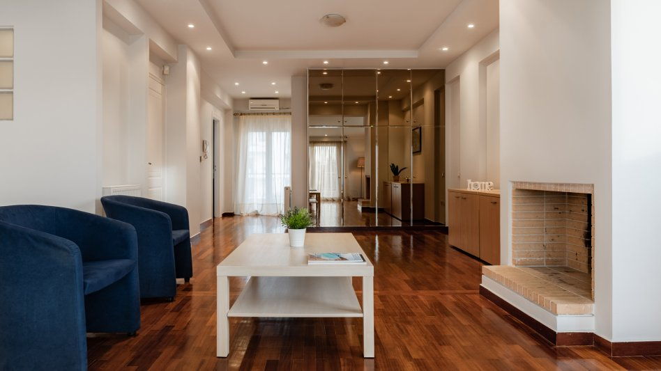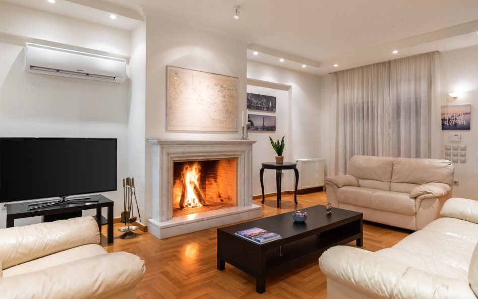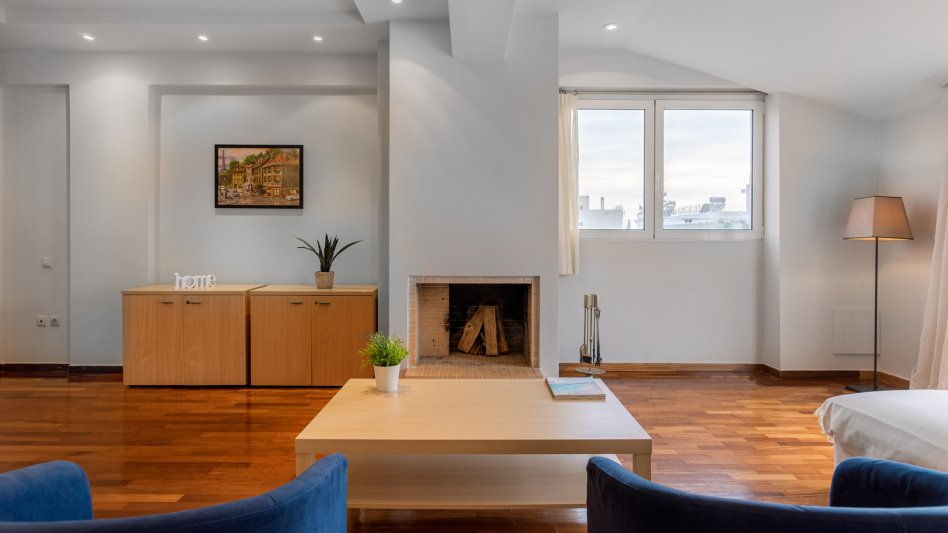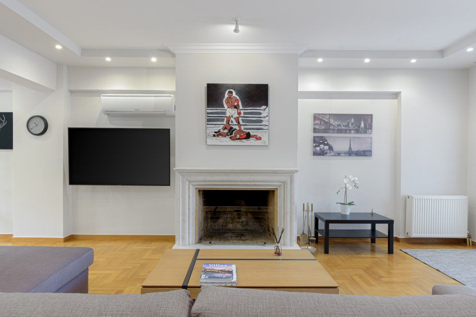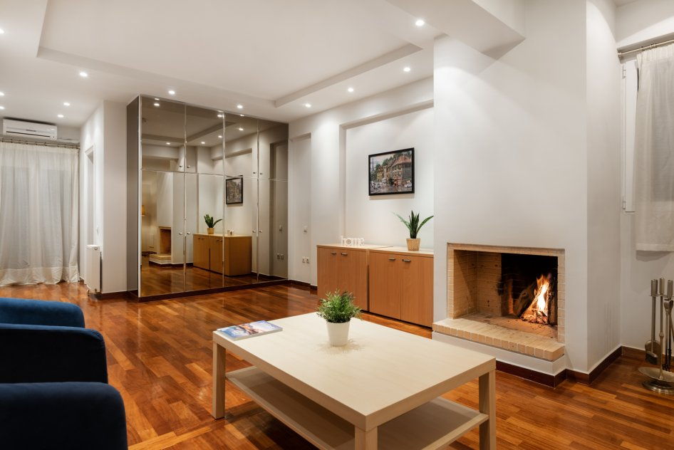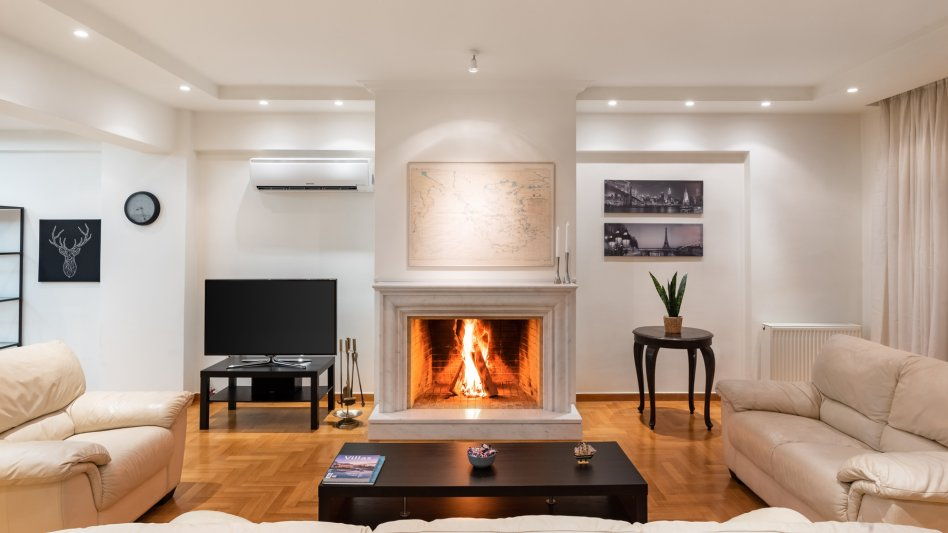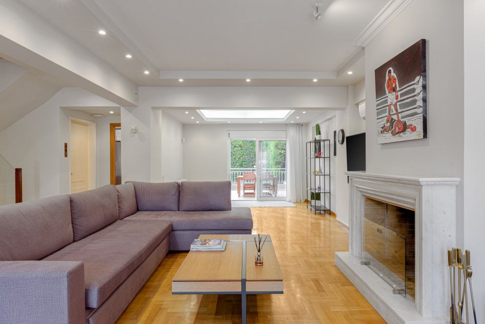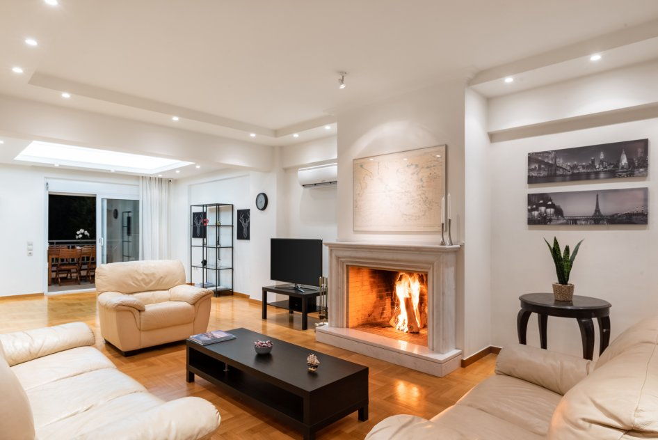 - Large living room with fireplace